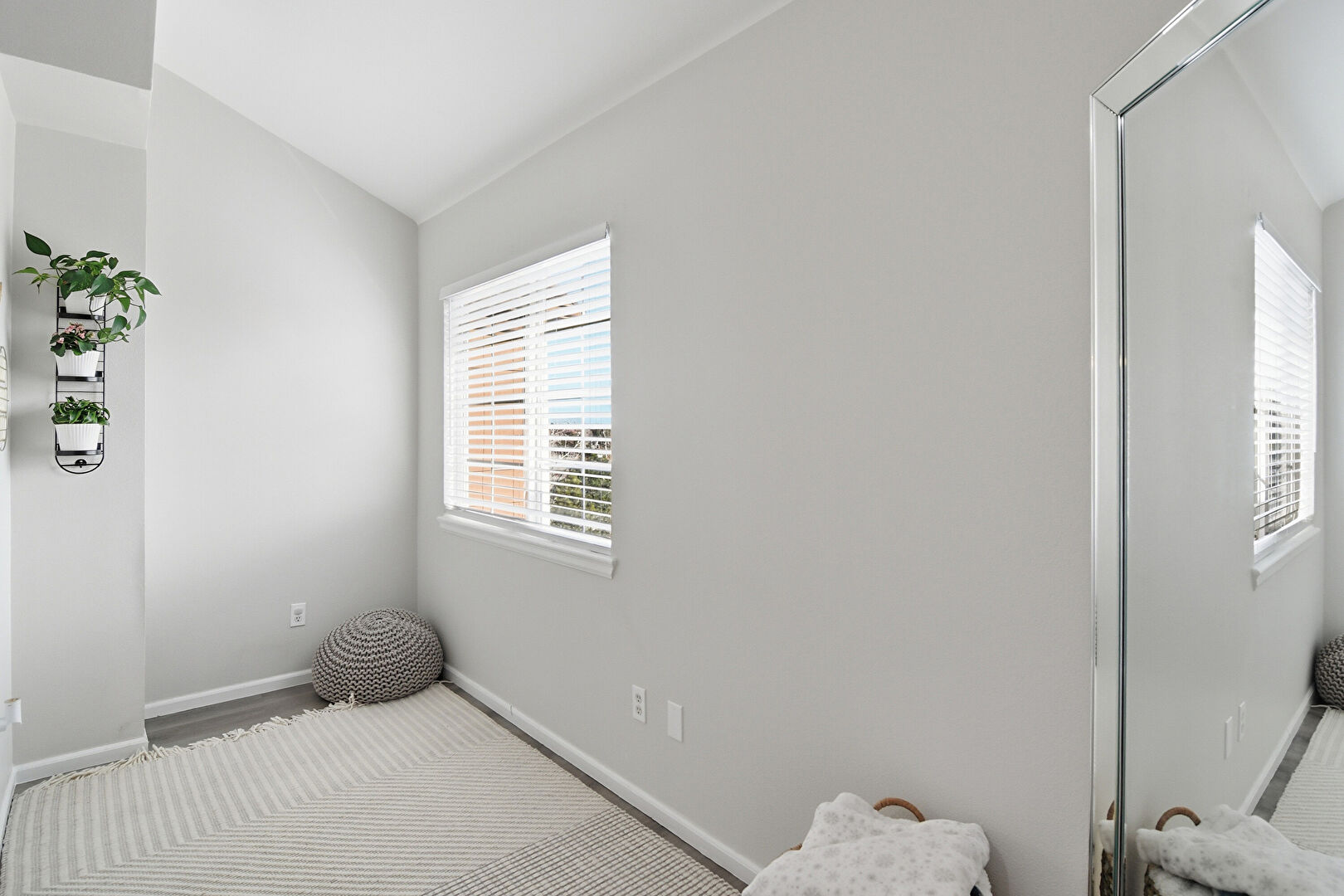Baseboards Wall, Carpet, Drywall, Natural Light, Wood Finish Floor, Drywall, Vaulted Ceiling