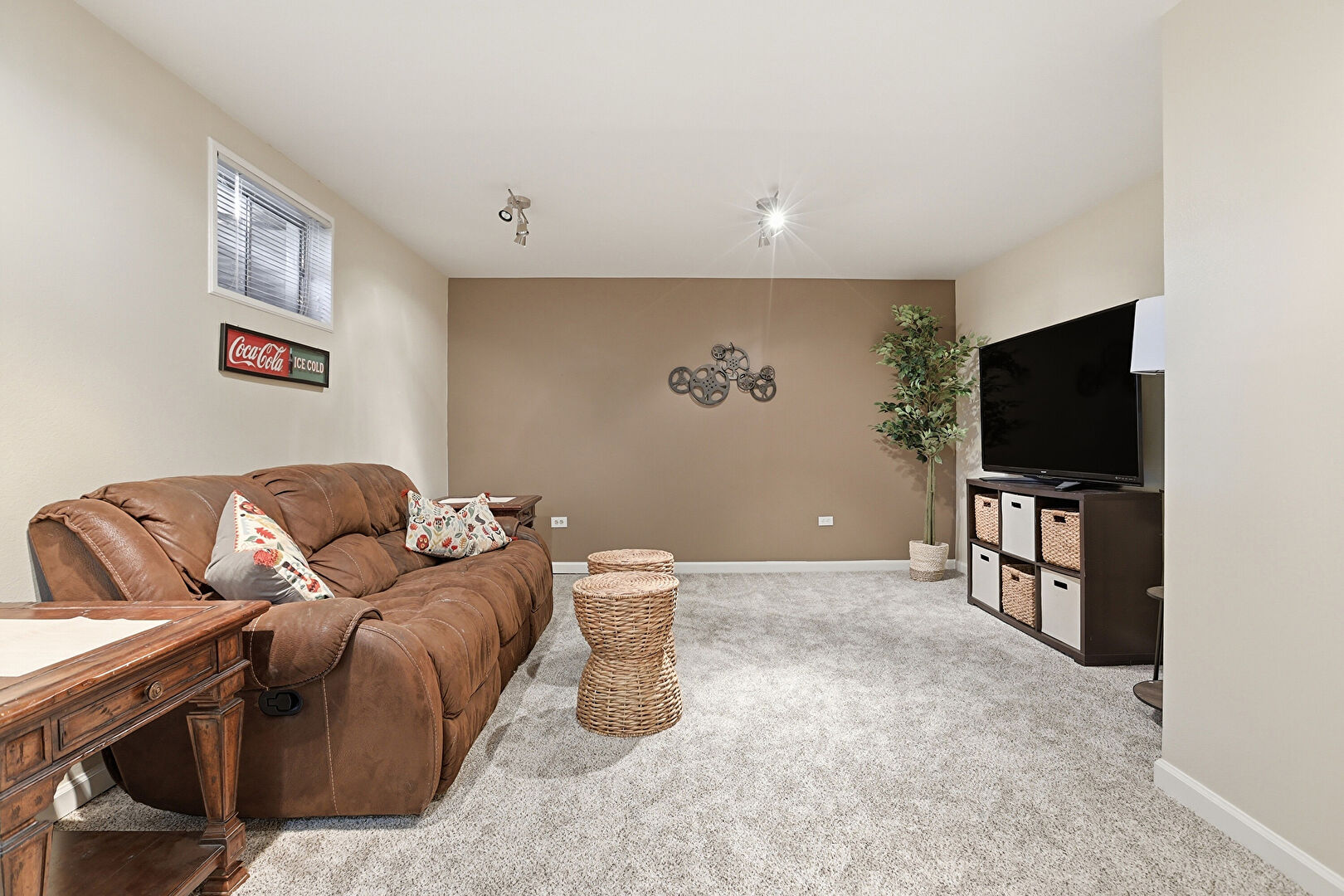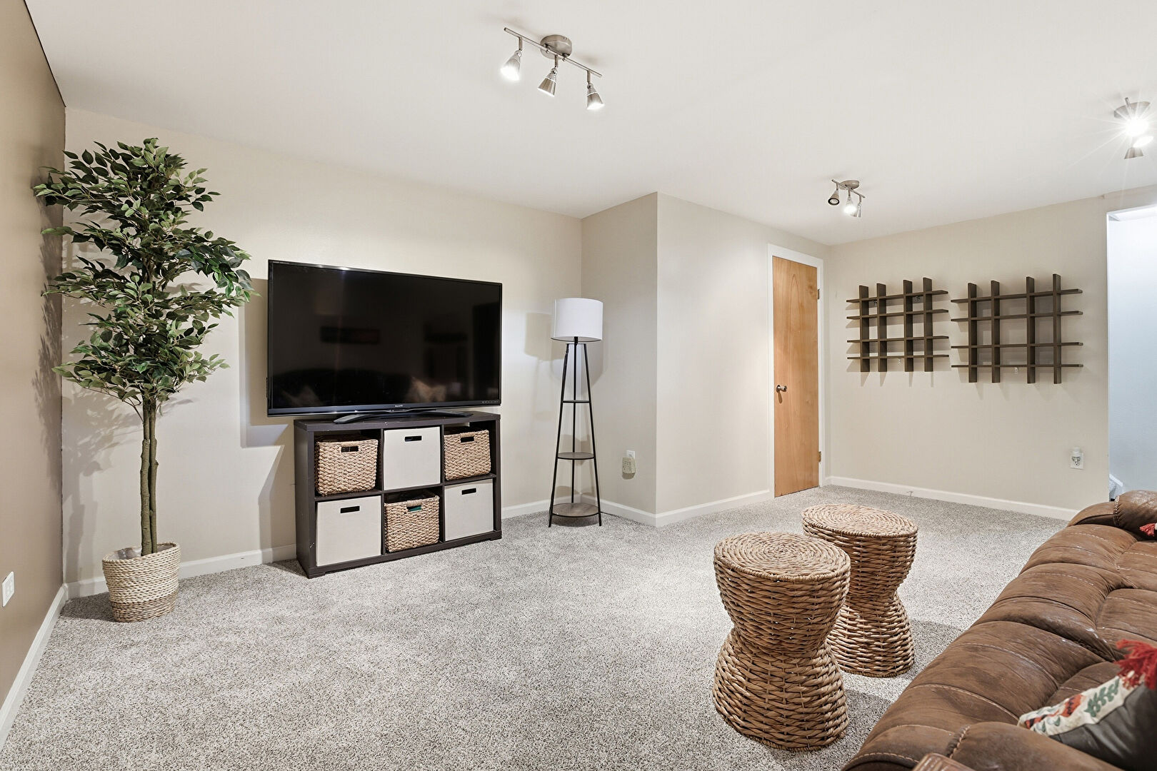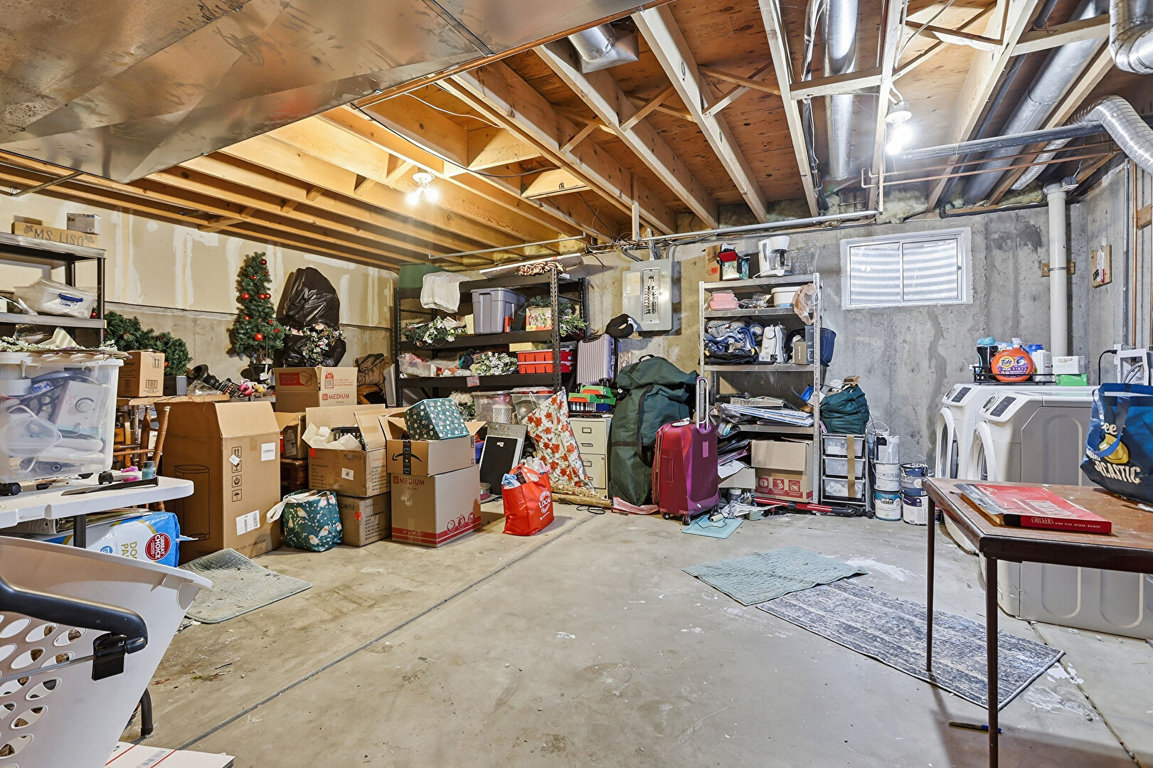 Baseboards Wall, Basement, Carpet, Drywall, Electric Panel, Laundry, Track Lighting, Baseboards Wall, Basement, Carpet, Concrete Foundation, Track Lighting