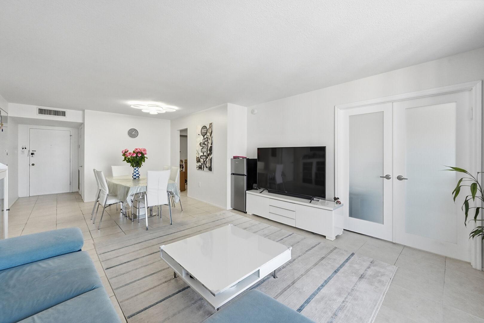 Baseboards Wall, City View, Drywall, Floor Ceiling Windows, French Doors, Natural Light, Tile Floor, Vent, Drywall, Natural Light, Tile Floor, Wood Finish Floor