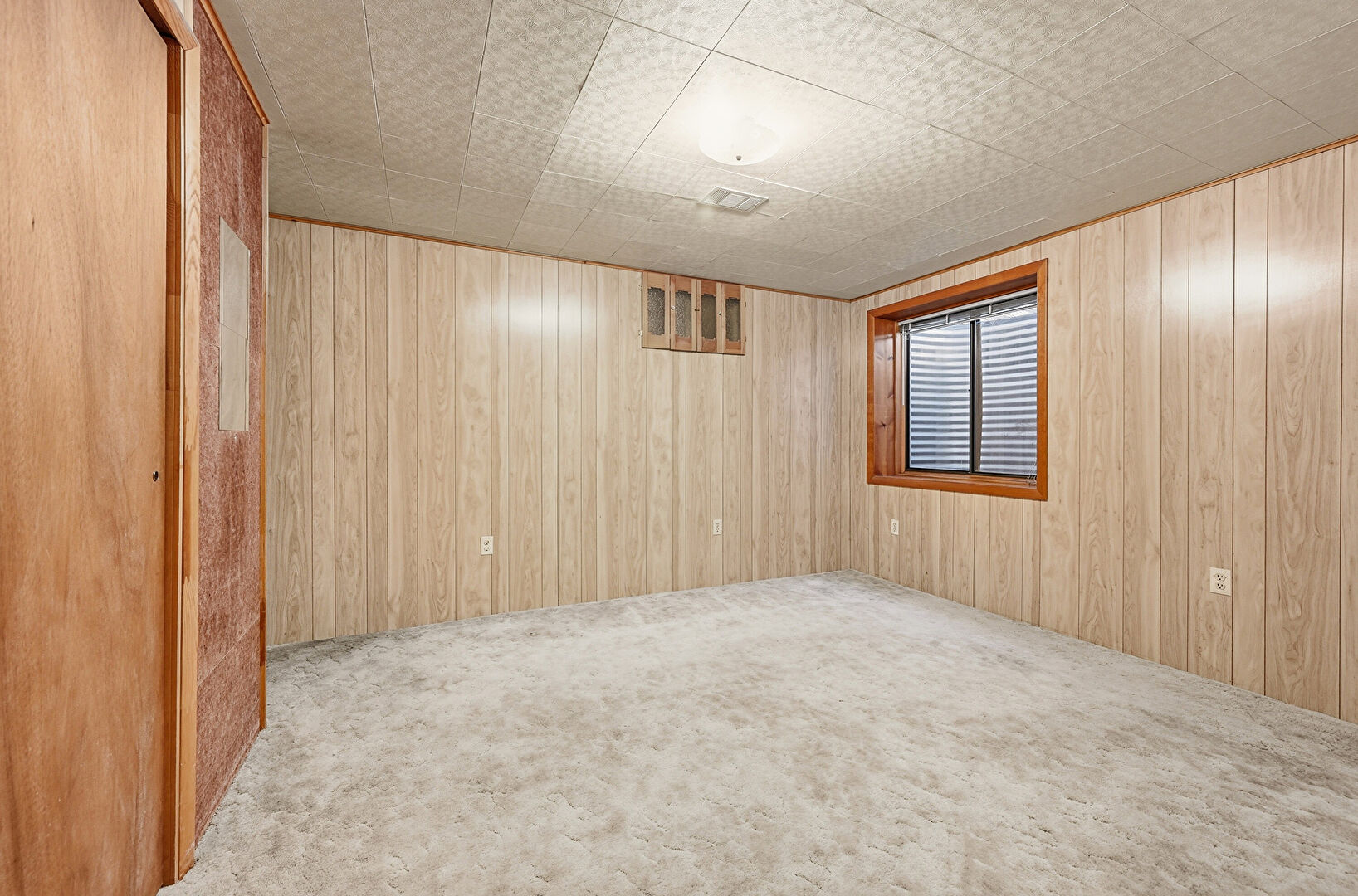Basement, Carpet, Natural Light, Vent, Legal Bedroom with Large exit legal window, Wood Wall
