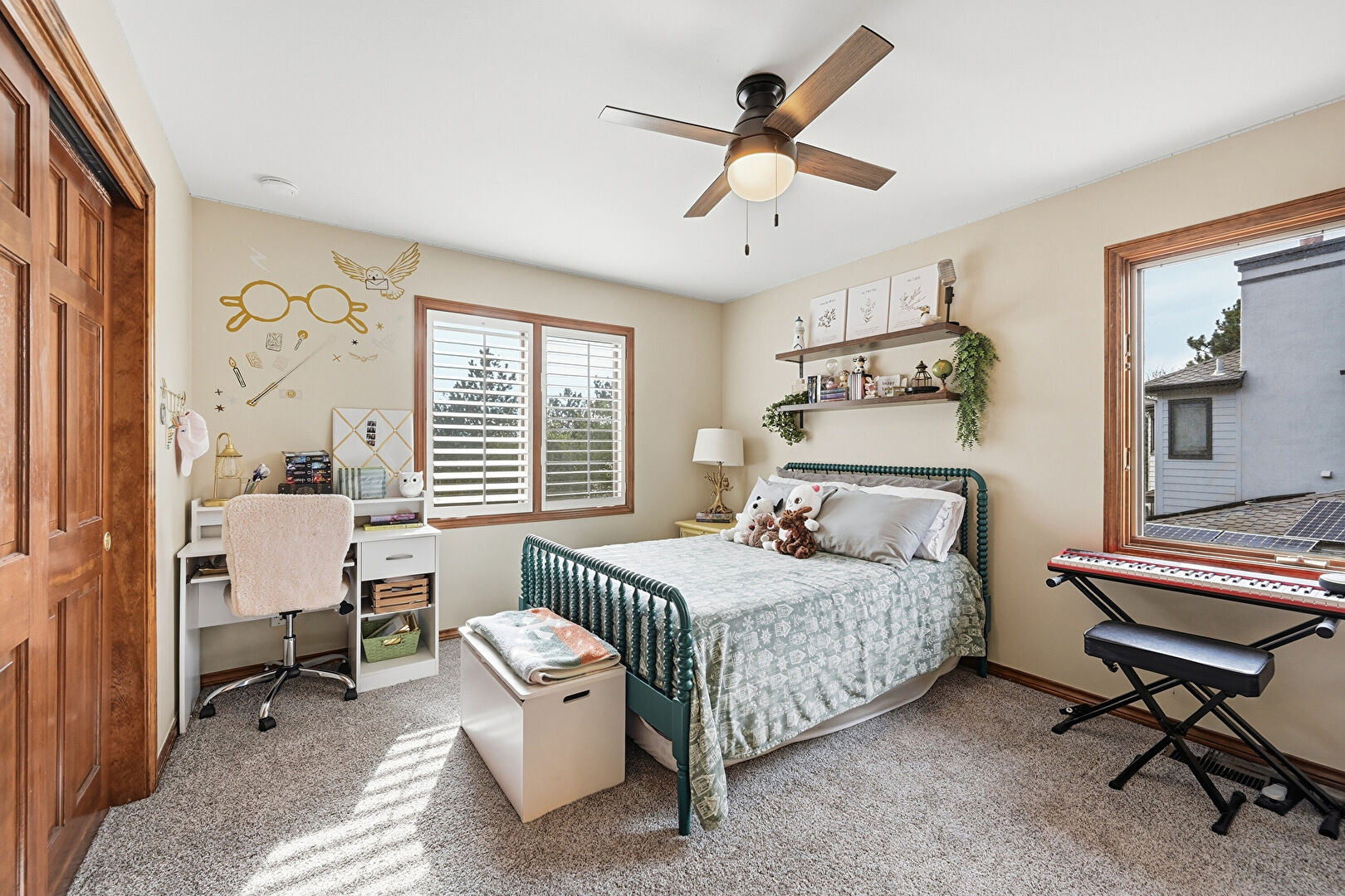Baseboards Wall, Carpet, Ceiling Fan, Closet, Drywall, Ensuite Bathroom, Natural Light, Office Area, Vent, Carpet, Ceiling Fan
