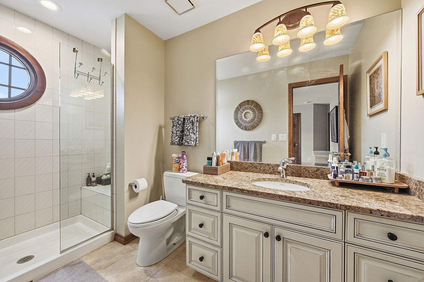 Drywall, Full Bathroom, Natural Light, Recessed Lighting, Tile Floor, Vanity, Water Closet, Full Bathroom, Recessed Lighting