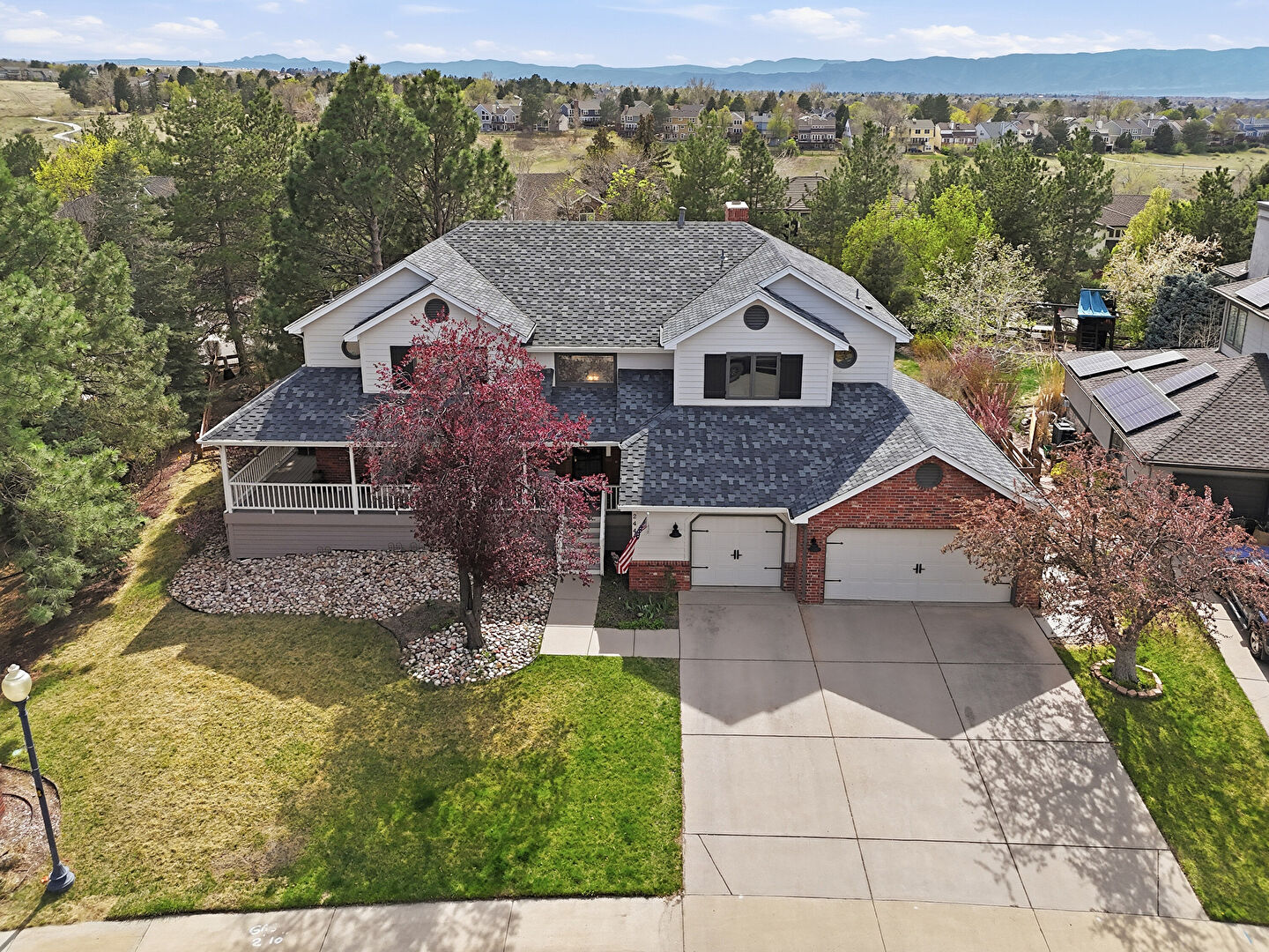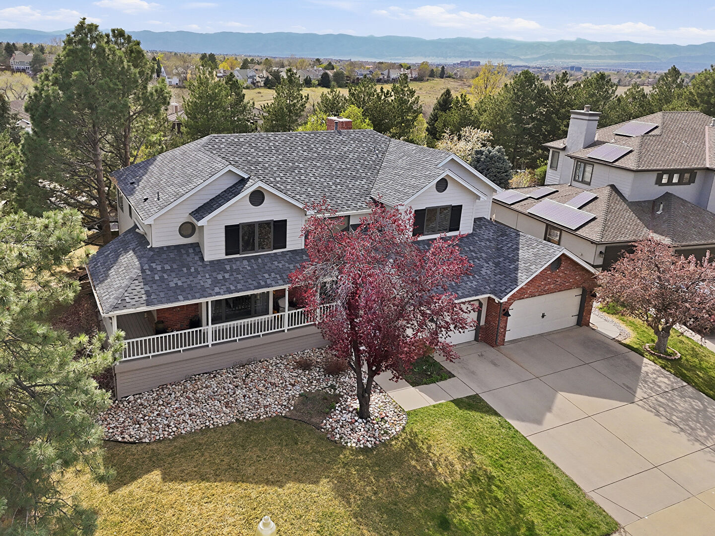 Brick Siding, Chimney, Downspout, Gutters, Horizontal Siding, Mountain View, Outdoor Dining Area, Patio, Residential View, Shingle Roof, Stairs, Sunroom, Woods View, Deck, Mountain View, Residential View, Woods View
