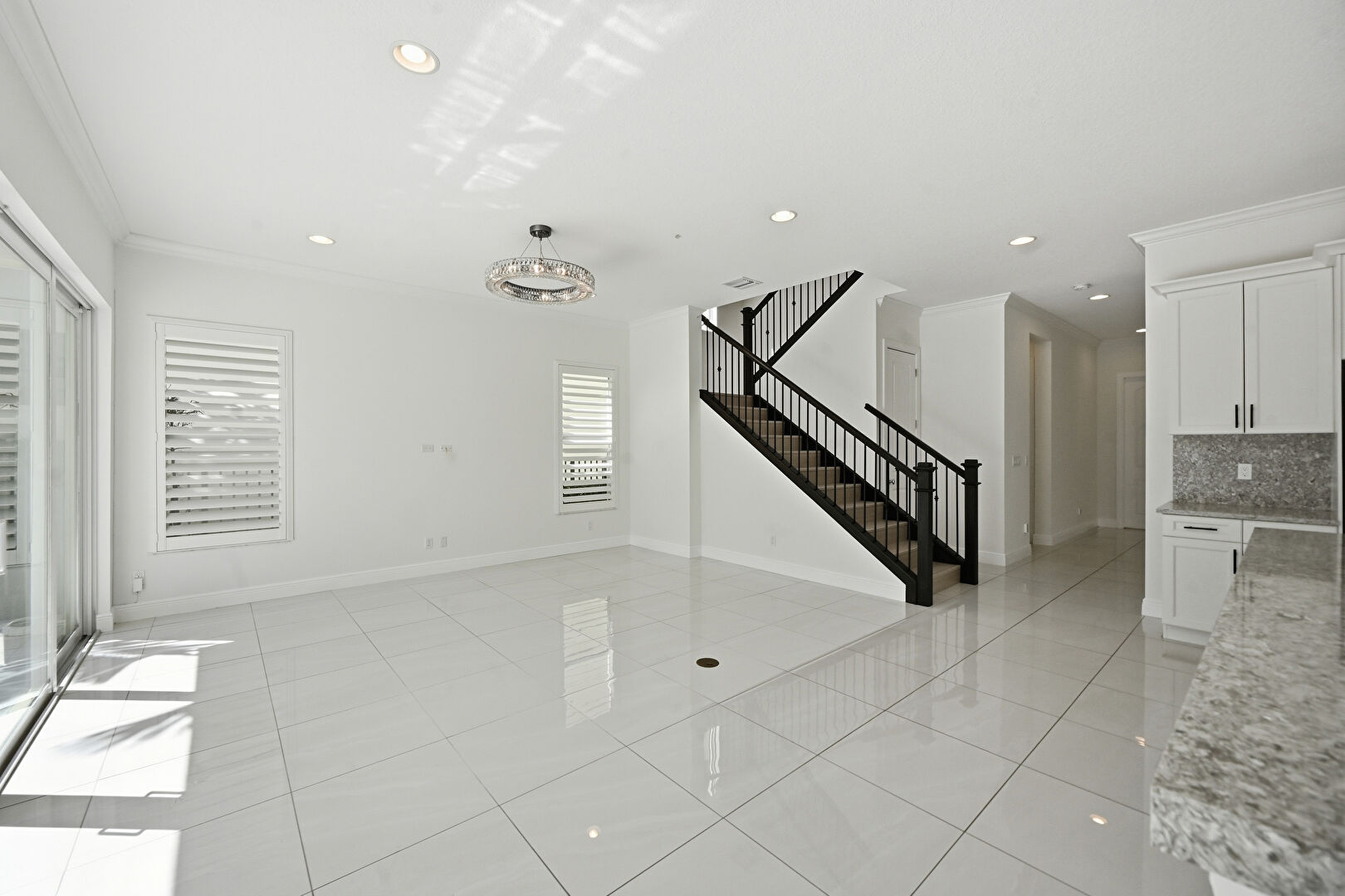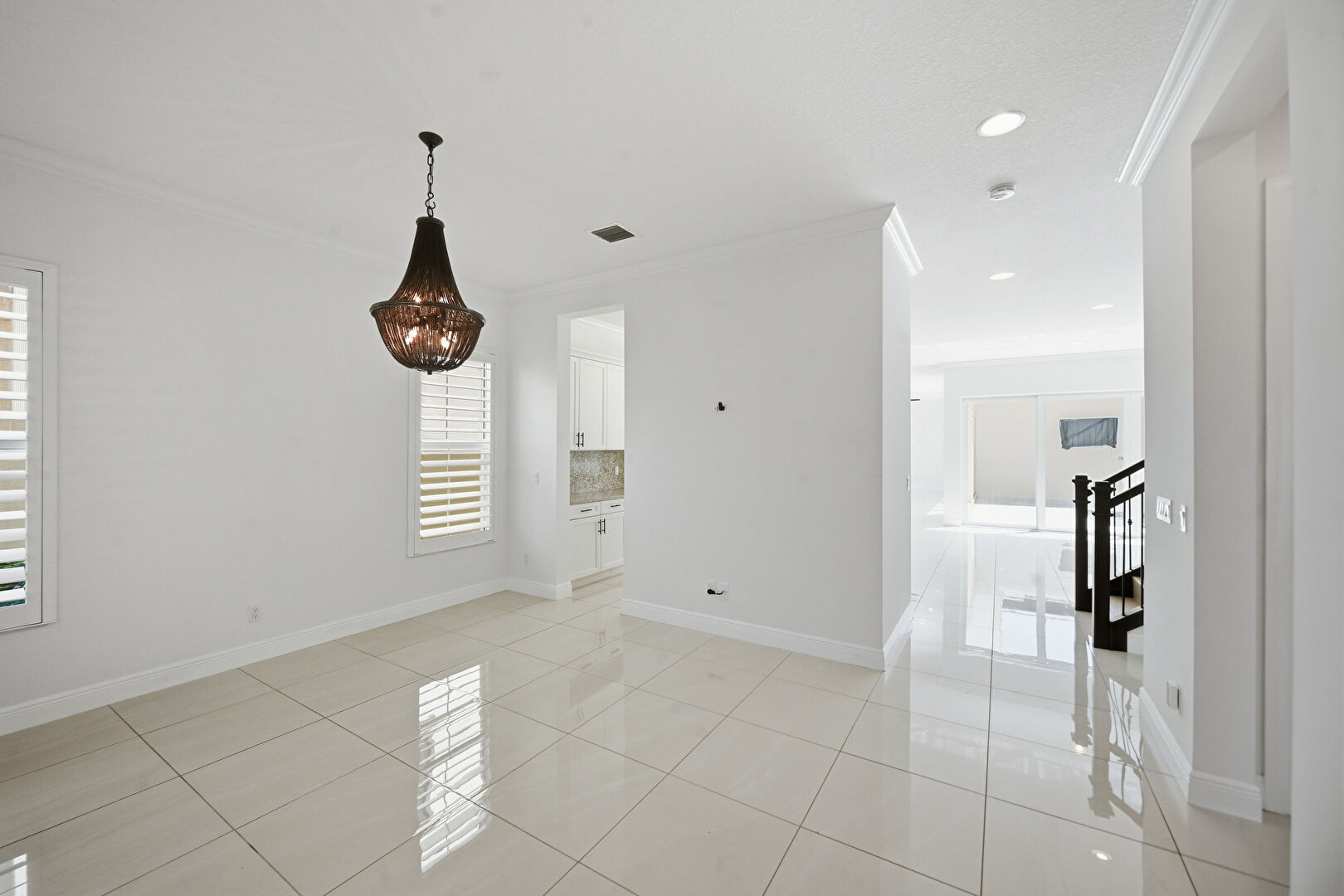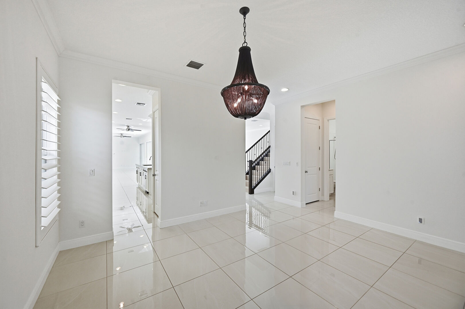 Baseboards Wall, Drywall, Natural Light, Notable Chandelier, Recessed Lighting, Stairs, Tile Floor, Vent, Wood Finish Floor, Crown Molding, Vent