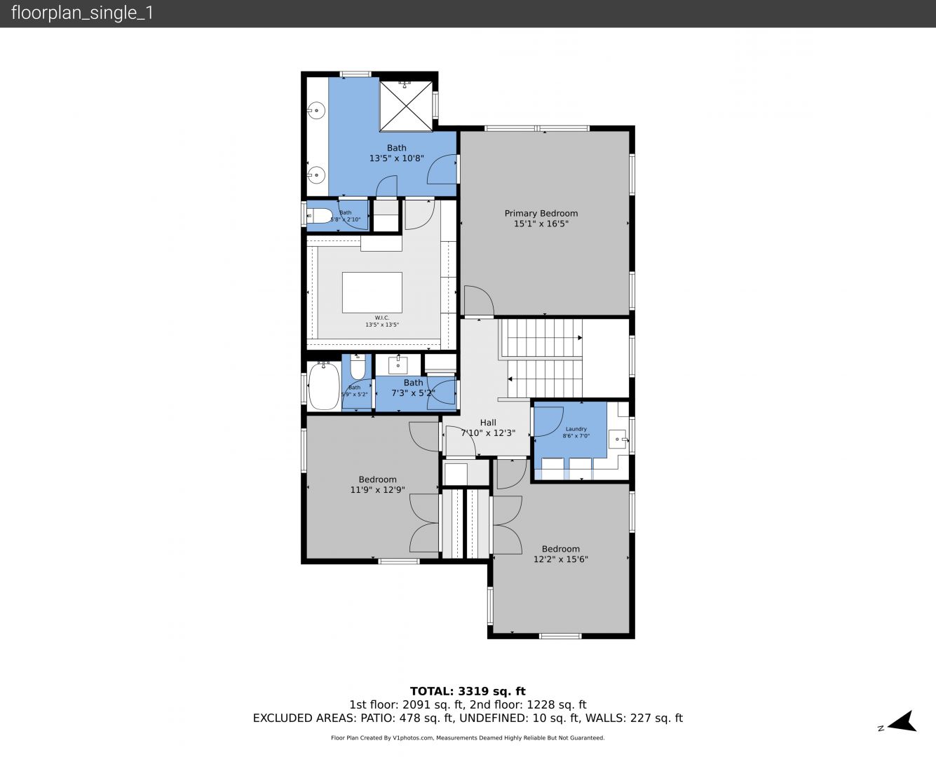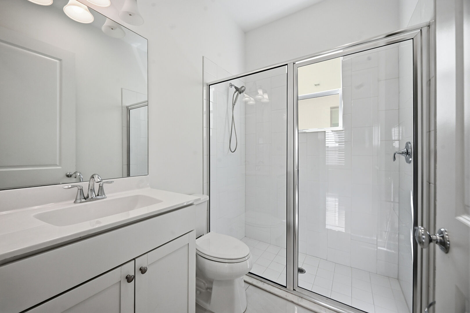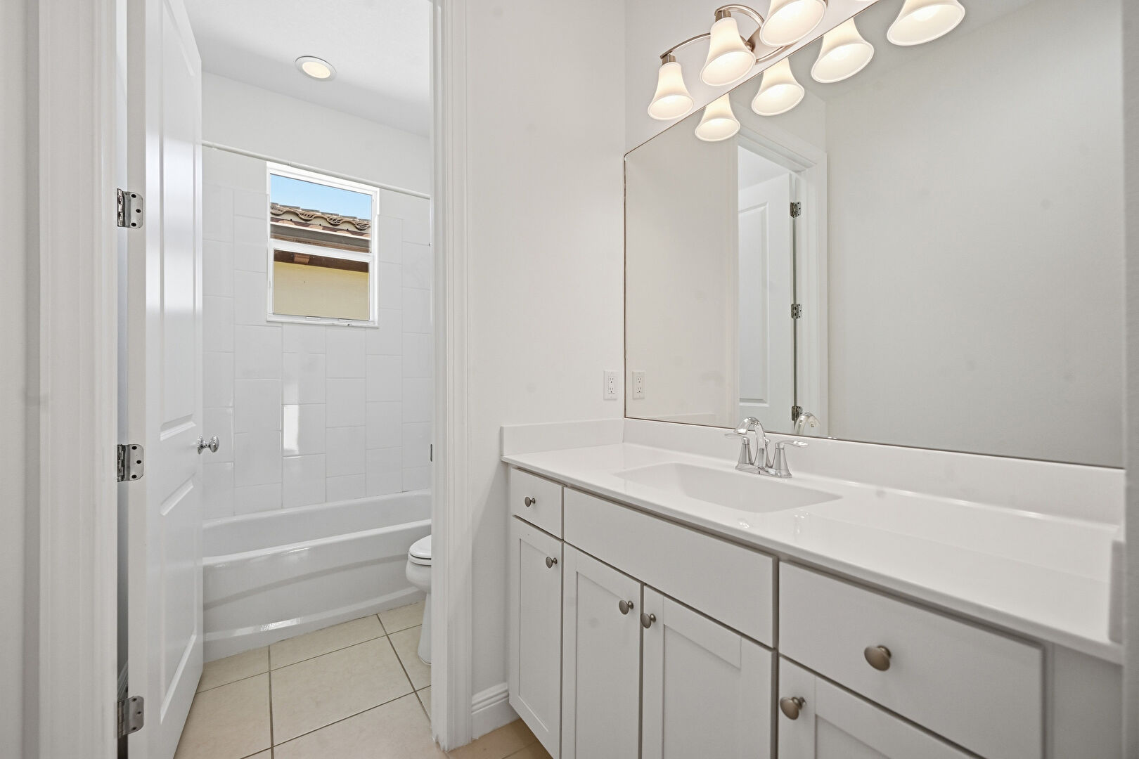 Baseboards Wall, Combined Bath Shower, Double Vanity, Drywall, Full Bathroom, Natural Light, Recessed Lighting, Tile Floor, Two Single Vanities, Vanity, Vent, Full Bathroom, Natural Light, Recessed Lighting, Vanity