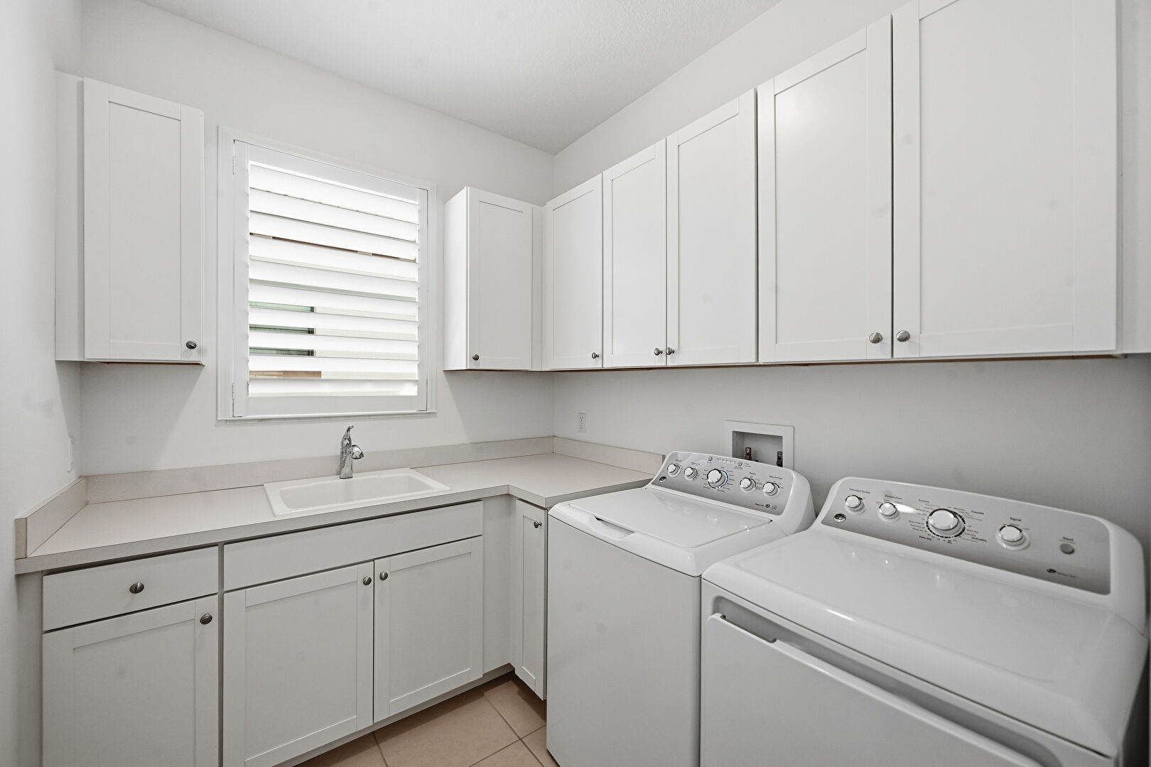 Drywall, Laundry, Natural Light, Tile Floor, Washer Hookup