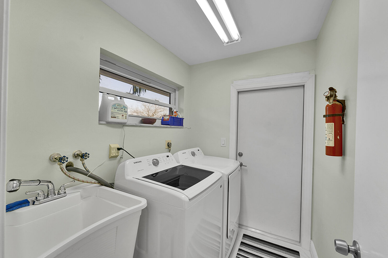 Baseboards Wall, Drywall, Electric Dryer Hookup, Fire Extinguisher, Laundry, Natural Light, Washer Hookup