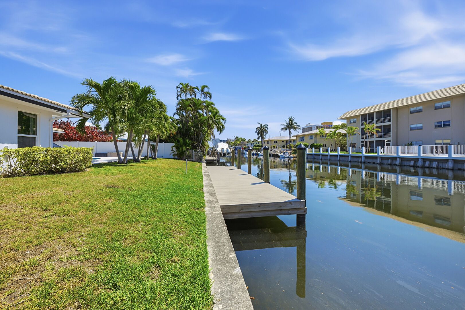 Apartment Complex View, Canalfront, Dock, Fence, Lawn, Patio, Pool, Residential View, Water View, Waterfront, Waterfront Bulkhead, Dock, Lawn, Water View, Waterfront