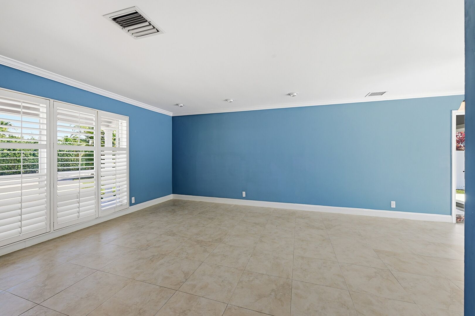 Baseboards Wall, Ceiling Fan, Crown Molding, Drywall, Natural Light, Notable Chandelier, Tile Floor, Vent, Drywall, Natural Light, Vent