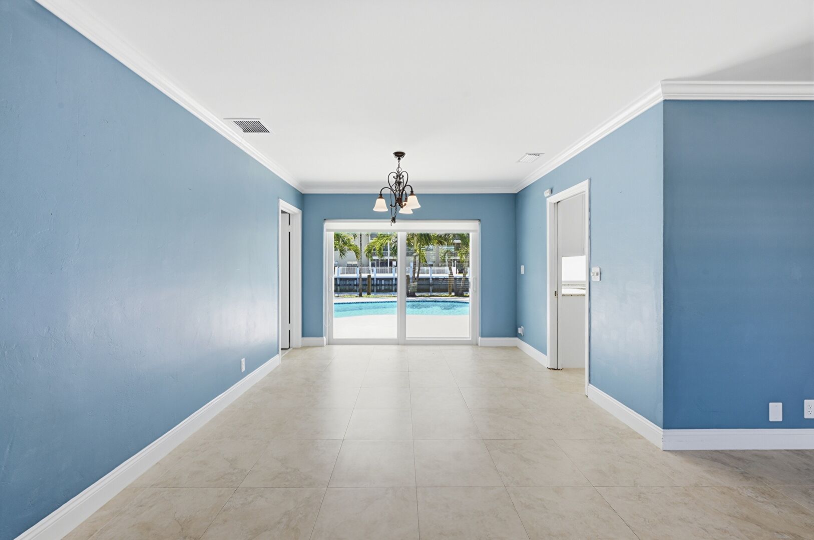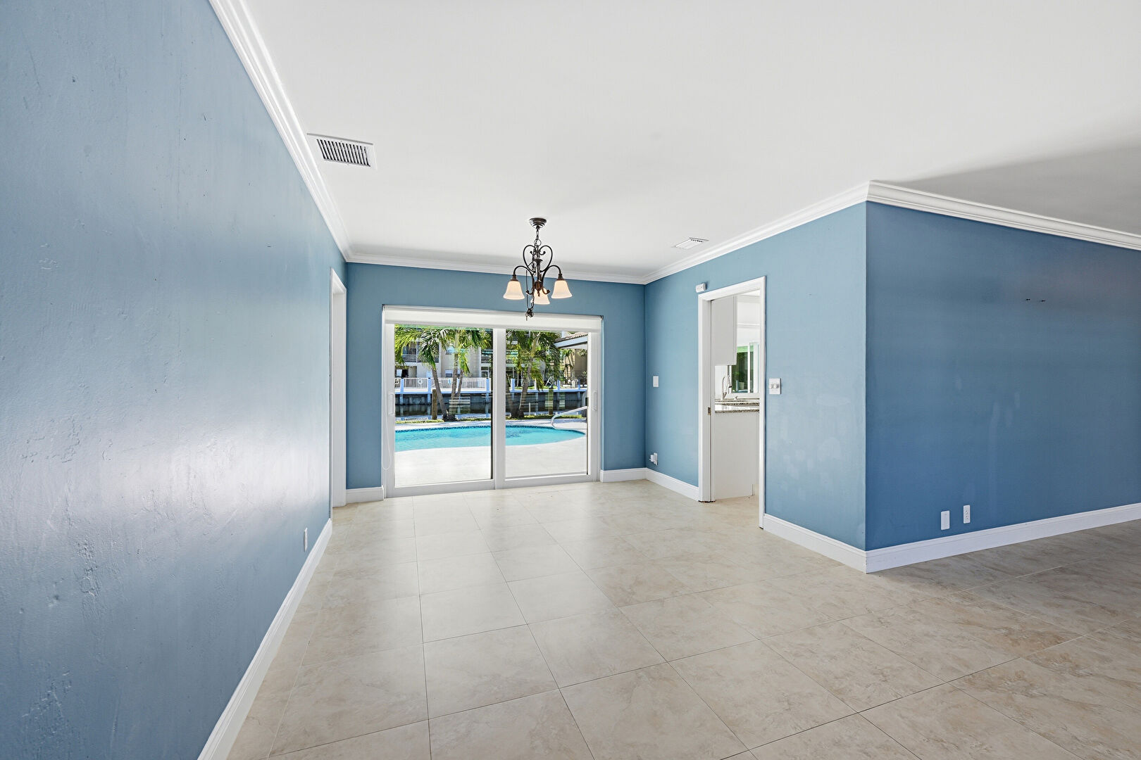 Baseboards Wall, Crown Molding, Drywall, Natural Light, Notable Chandelier, Tile Floor, Vent, Baseboards Wall, Natural Light, Vent