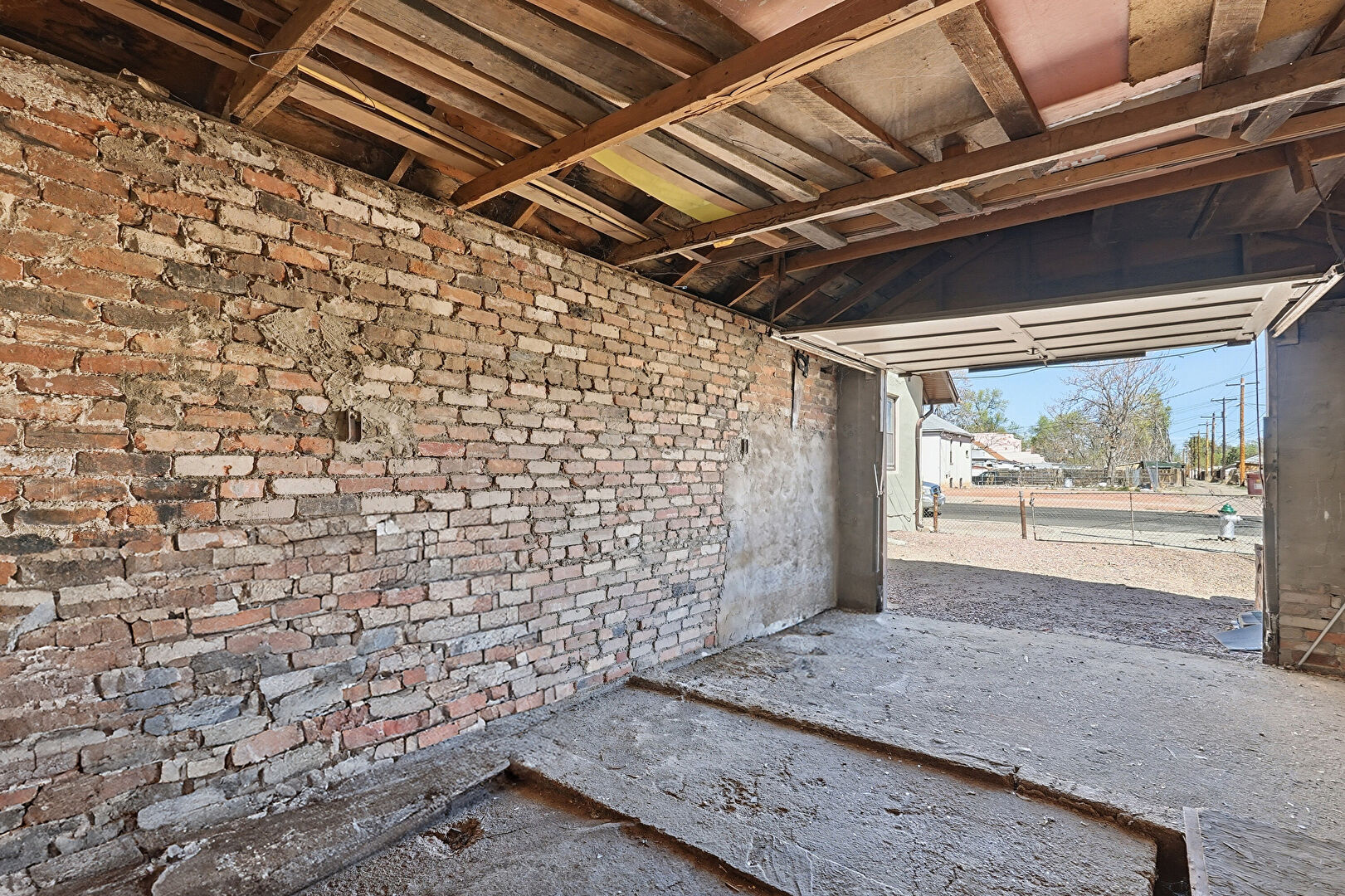 Brick Siding, Detached Garage, Driveway, Fence, Outdoor Structure, Satellite Dish, Shake Shingle Siding, Garage, Stucco Siding