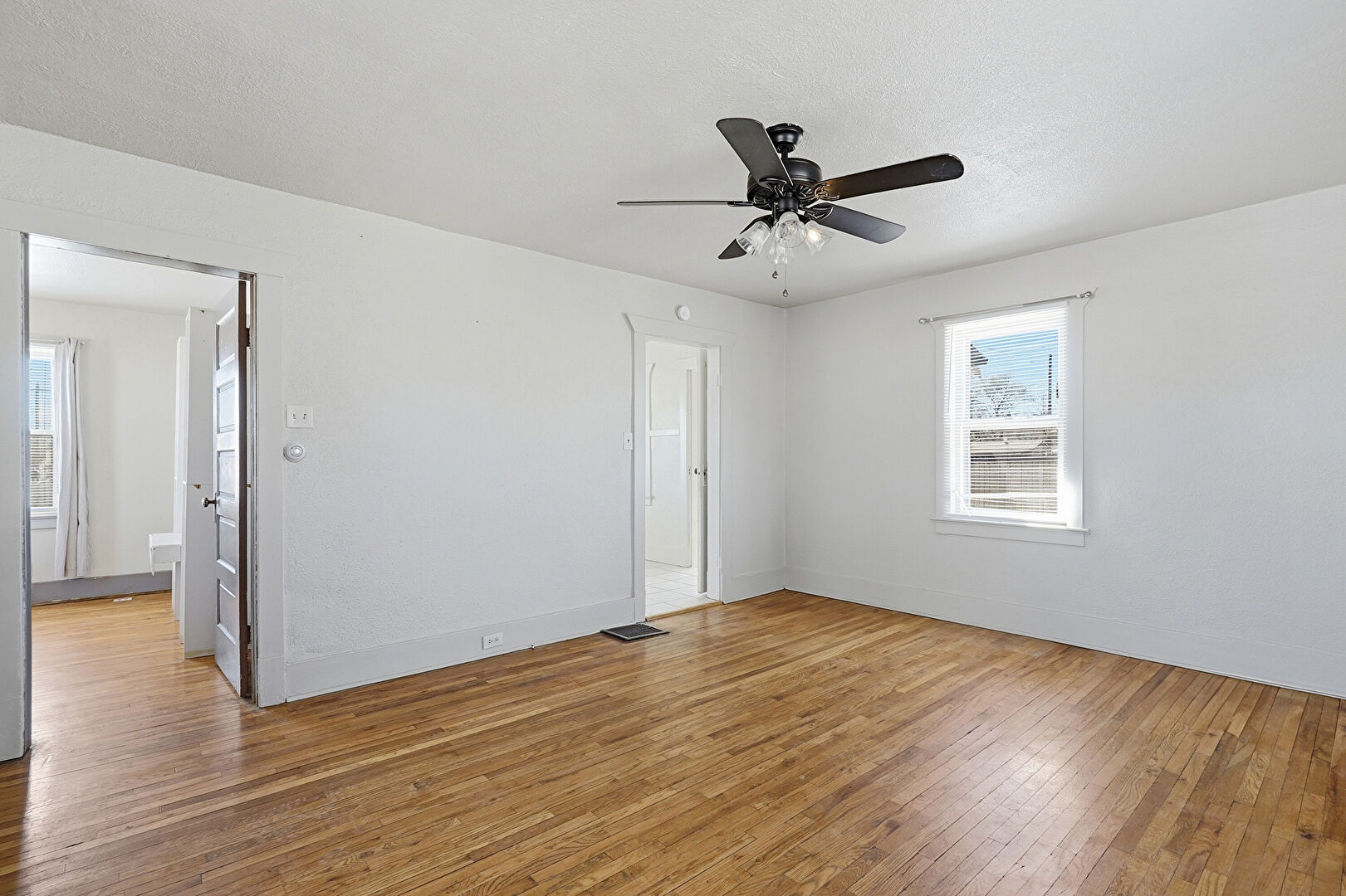 Baseboards Wall, Ceiling Fan, Drywall, Natural Light, Smoke Carbon Monoxide Detector, Textured Ceiling, Vent, Wood Finish Floor, Baseboards Wall, Drywall, Vent