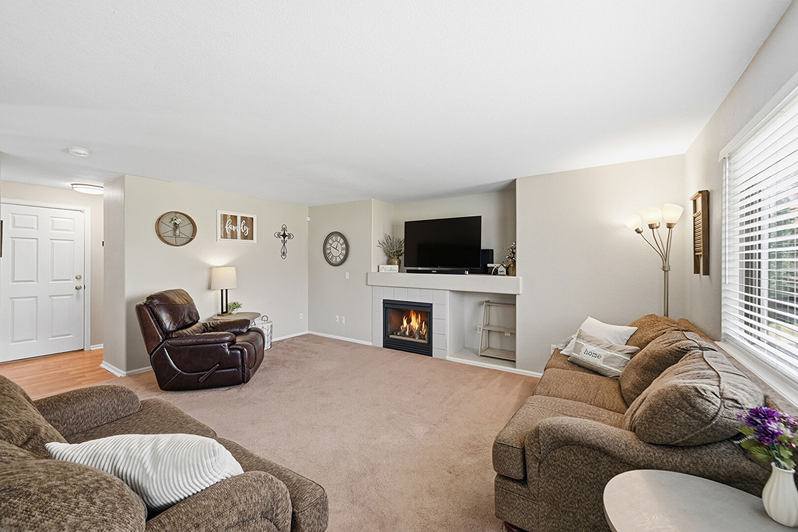 Baseboards Wall, Carpet, Drywall, Fireplace, Natural Light, Carpet, Drywall, Stairs