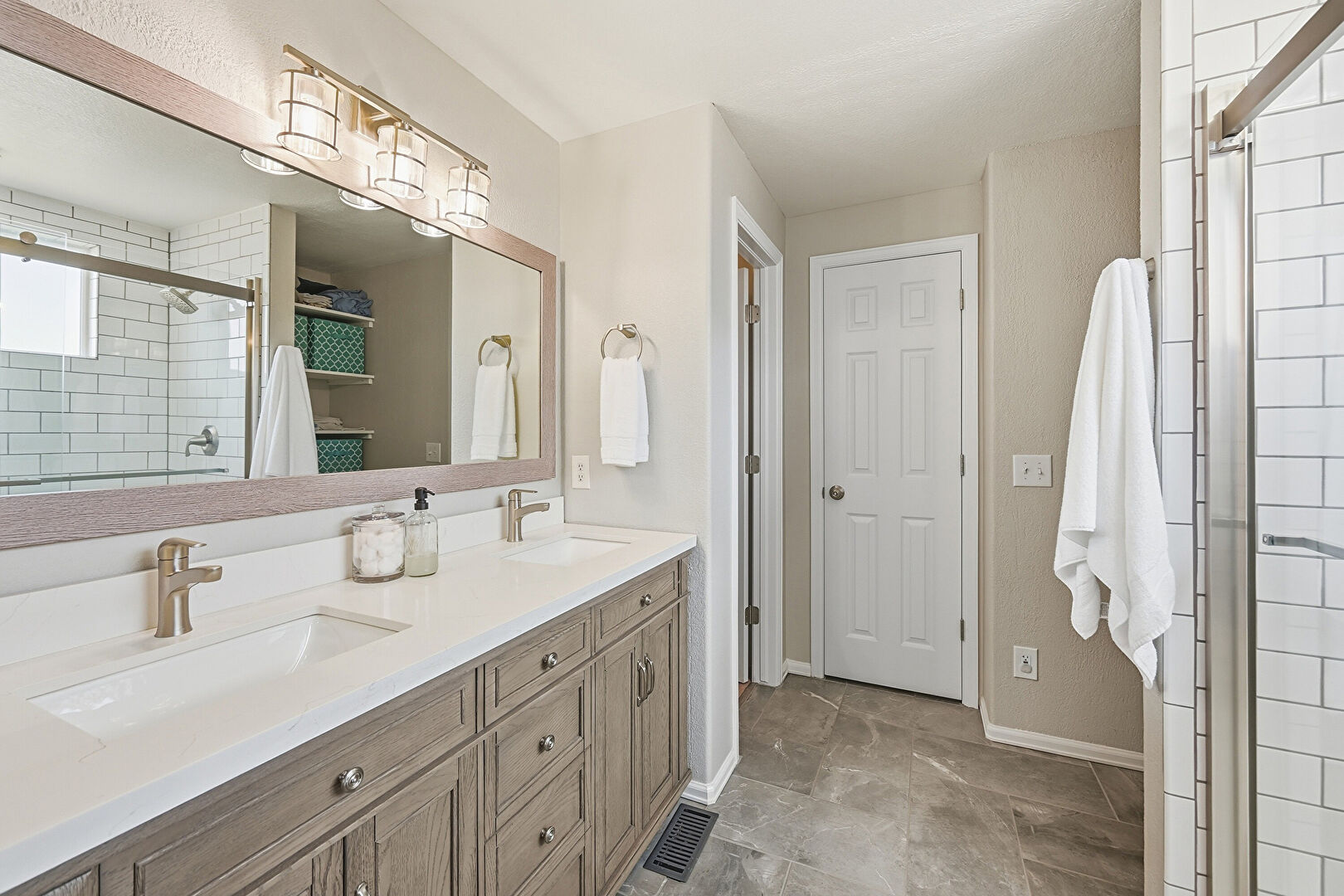 Double Vanity, Drywall, Full Bathroom, Textured Wall, Vent, Baseboards Wall, Full Bathroom
