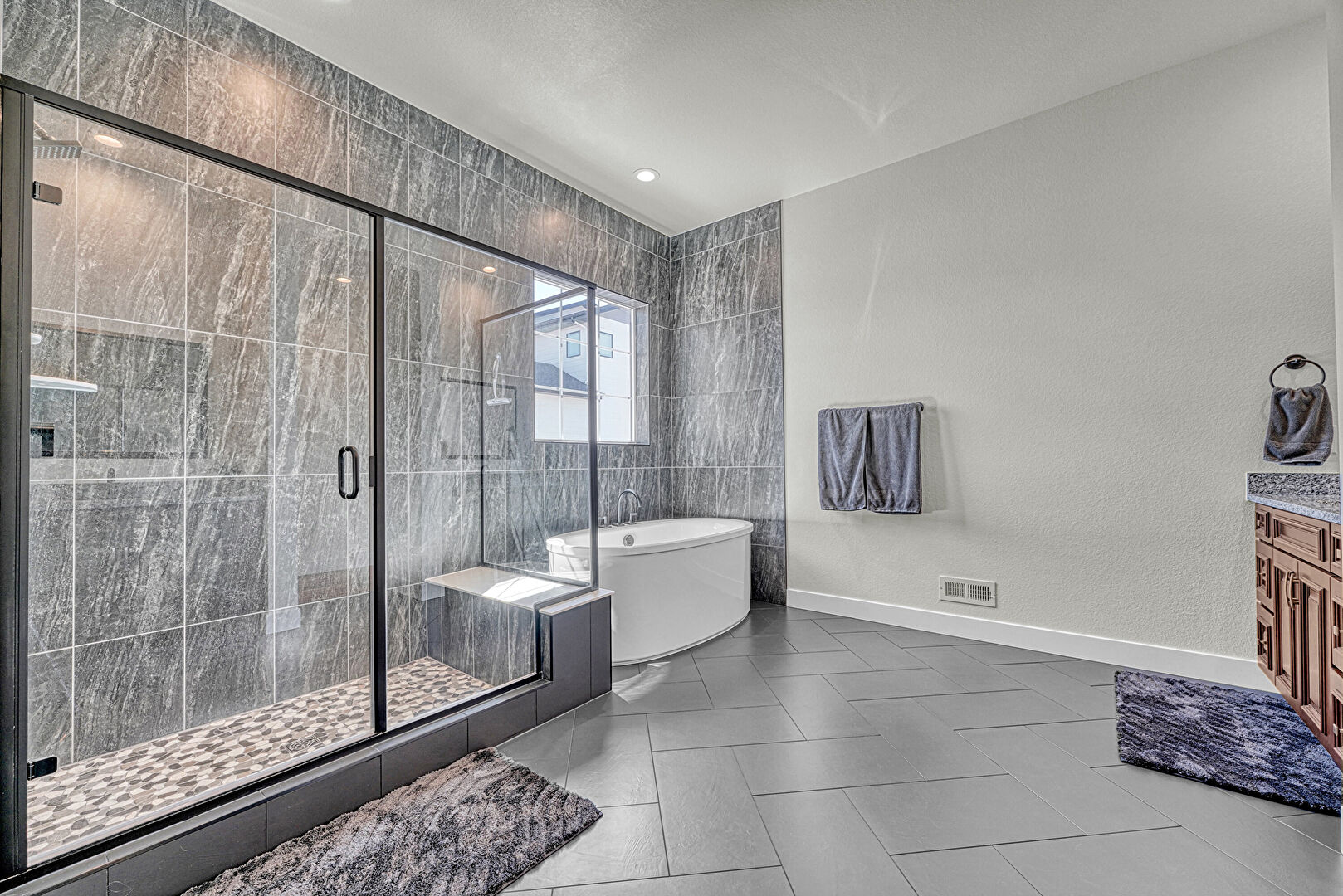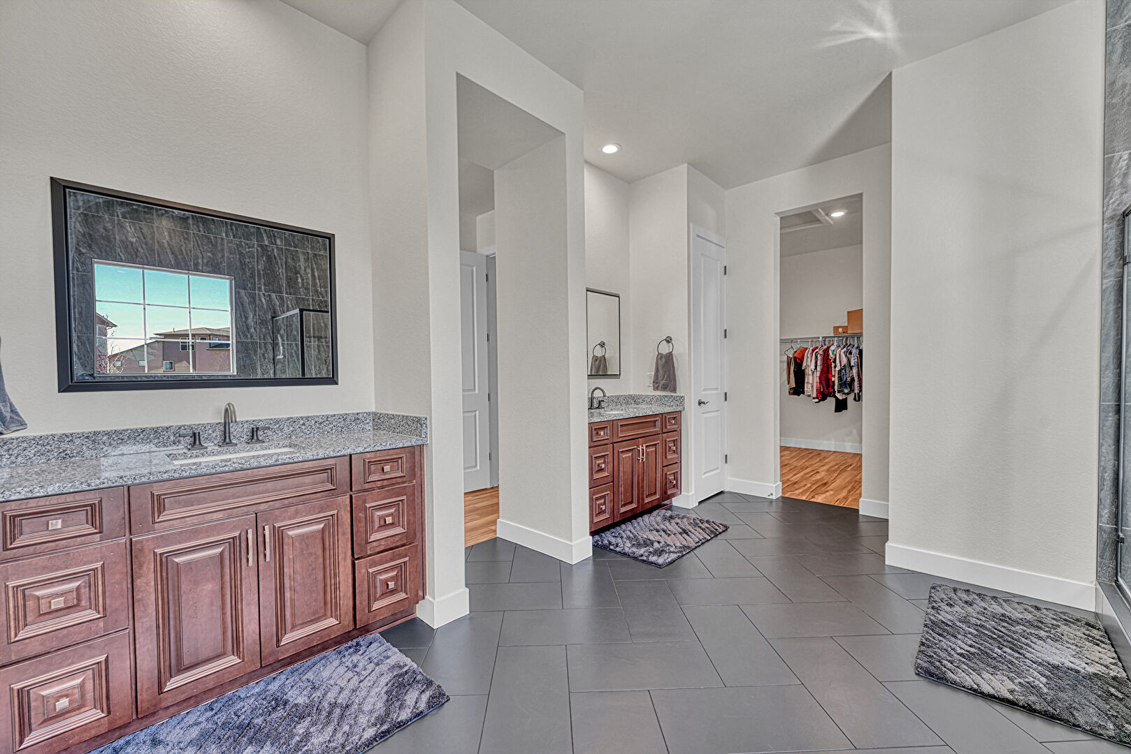 Baseboards Wall, Full Bathroom, Natural Light, Recessed Lighting, Textured Wall, Tile Floor, Two Single Vanities, Vanity, Vent, Walk In Closet, Drywall, Natural Light