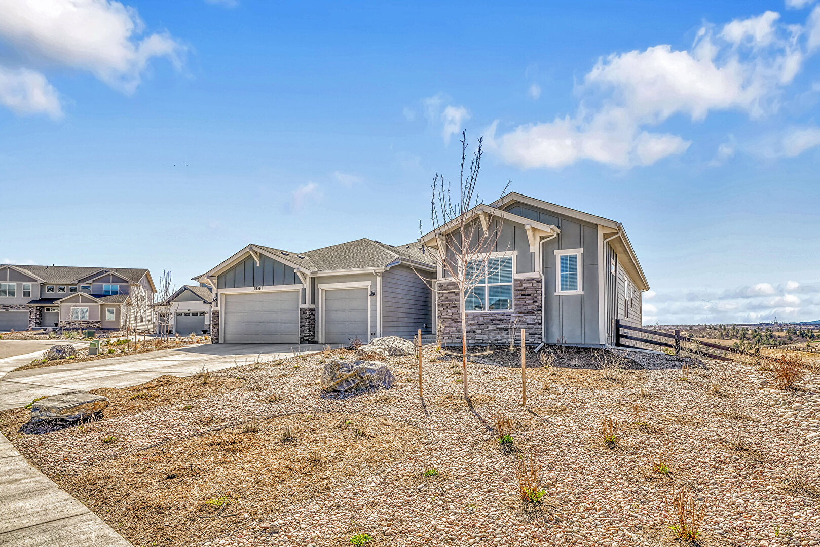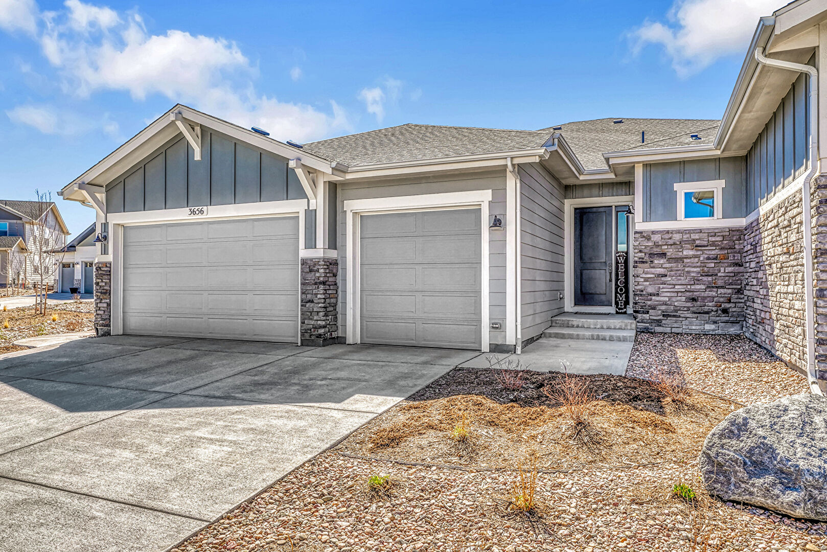 Board Batten Siding, Concrete Foundation, Downspout, Driveway, Fence, Gutters, Horizontal Siding, Residential View, Shingle Roof, Stone Siding, Stoop, Vertical Siding, Downspout, Driveway, Fence, Vertical Siding