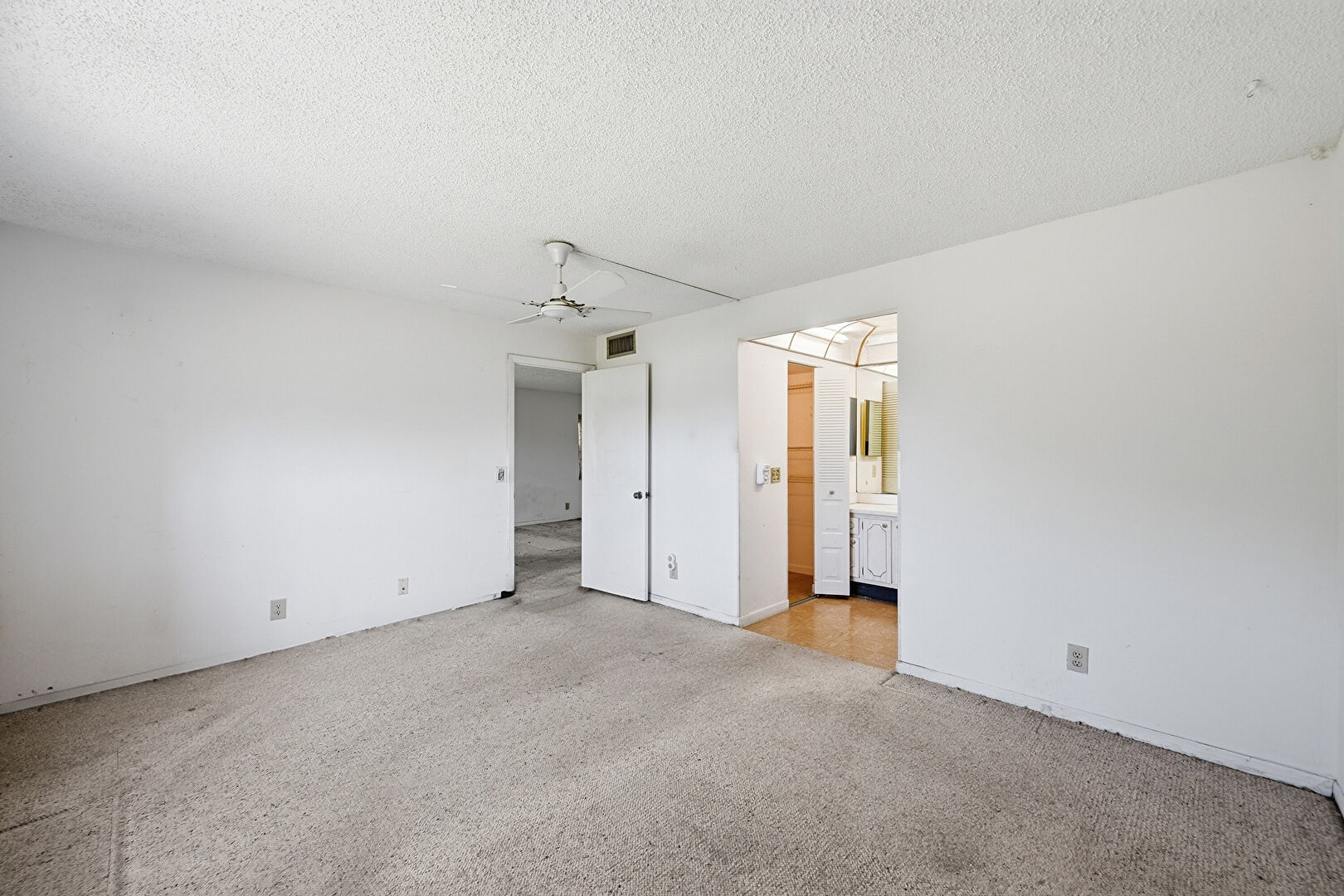 Baseboards Wall, Carpet, Ceiling Fan, Drywall, Natural Light, Textured Ceiling, Vent, Baseboards Wall, Ensuite Bathroom, Natural Light