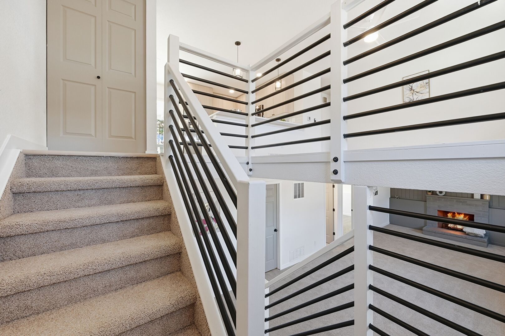 Drywall, Fireplace, Stairs