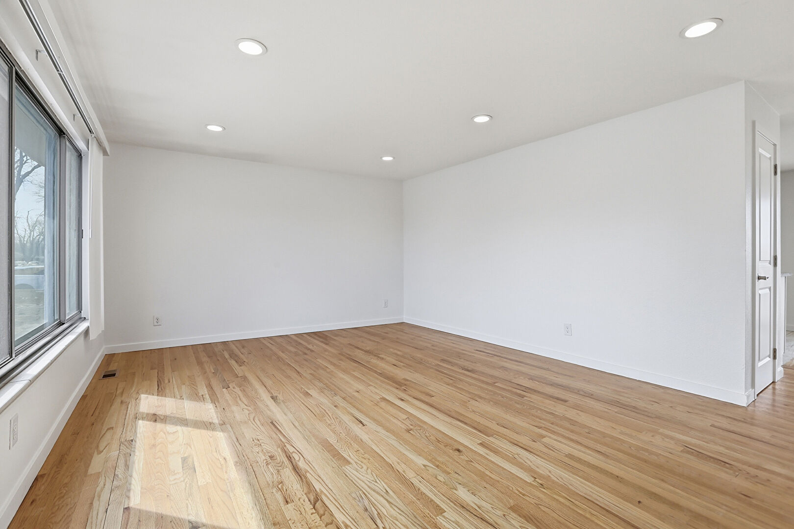 Baseboards Wall, Drywall, Natural Light, Recessed Lighting, Vent, Wood Finish Floor, Natural Light, Wood Finish Floor