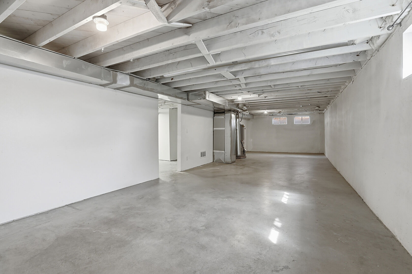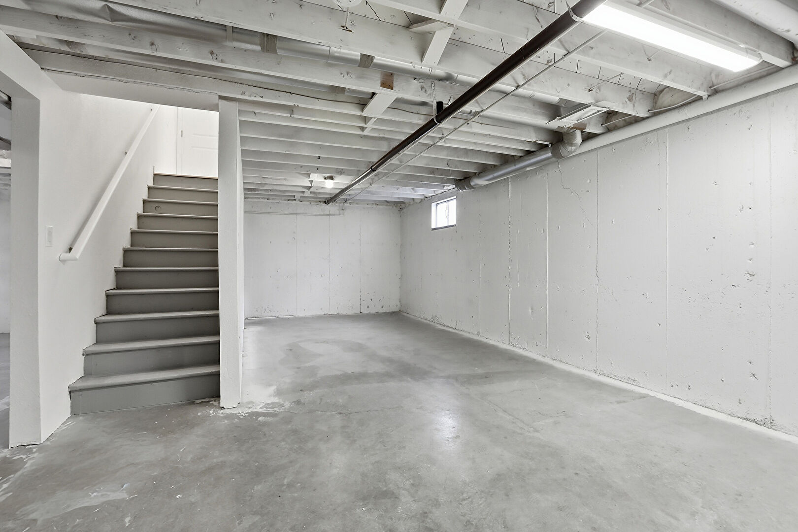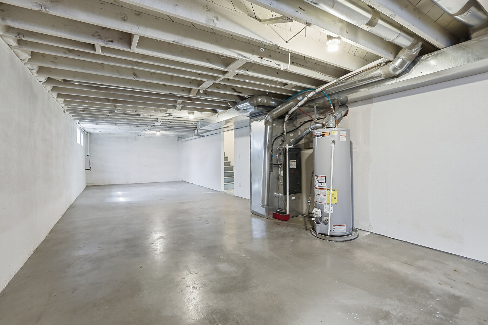 Basement, Concrete Foundation, Drywall, Furnace, Natural Light, Stairs, Vent, Water Heater, Basement, Drywall, Natural Light