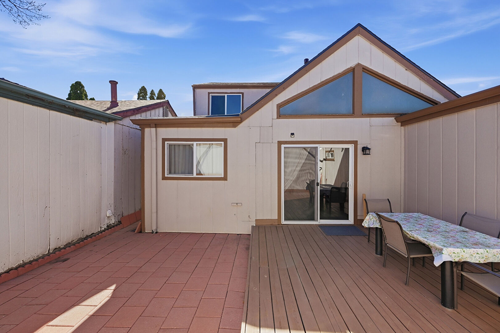 Deck, Outdoor Dining Area, Patio, Satellite Dish, Shingle Roof, Vertical Siding, Fence, Outdoor Dining Area