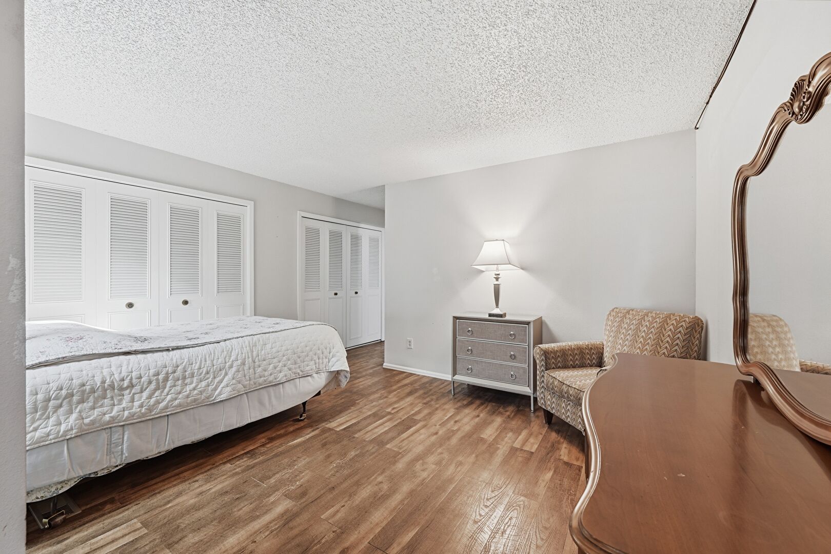 Baseboards Wall, Drywall, Textured Ceiling, Two Closets, Wood Finish Floor, Closet, Wood Finish Floor