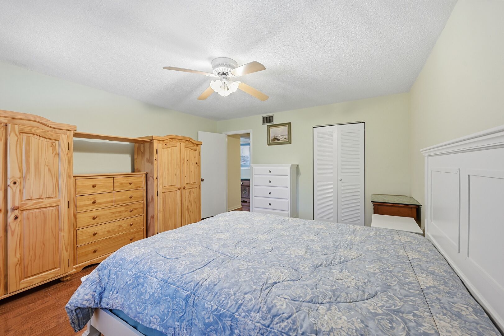 Baseboards Wall, Ceiling Fan, Closet, Drywall, Natural Light, Textured Ceiling, Vent, Wood Finish Floor, Baseboards Wall, Textured Ceiling, Vent