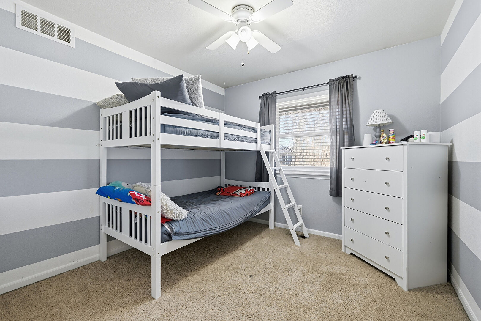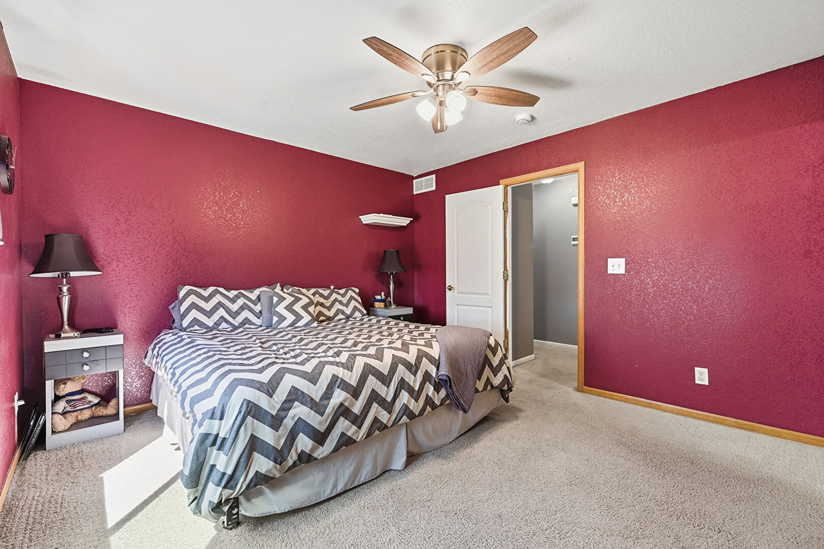 Baseboards Wall, Carpet, Ceiling Fan, Drywall, Vent, Natural Light