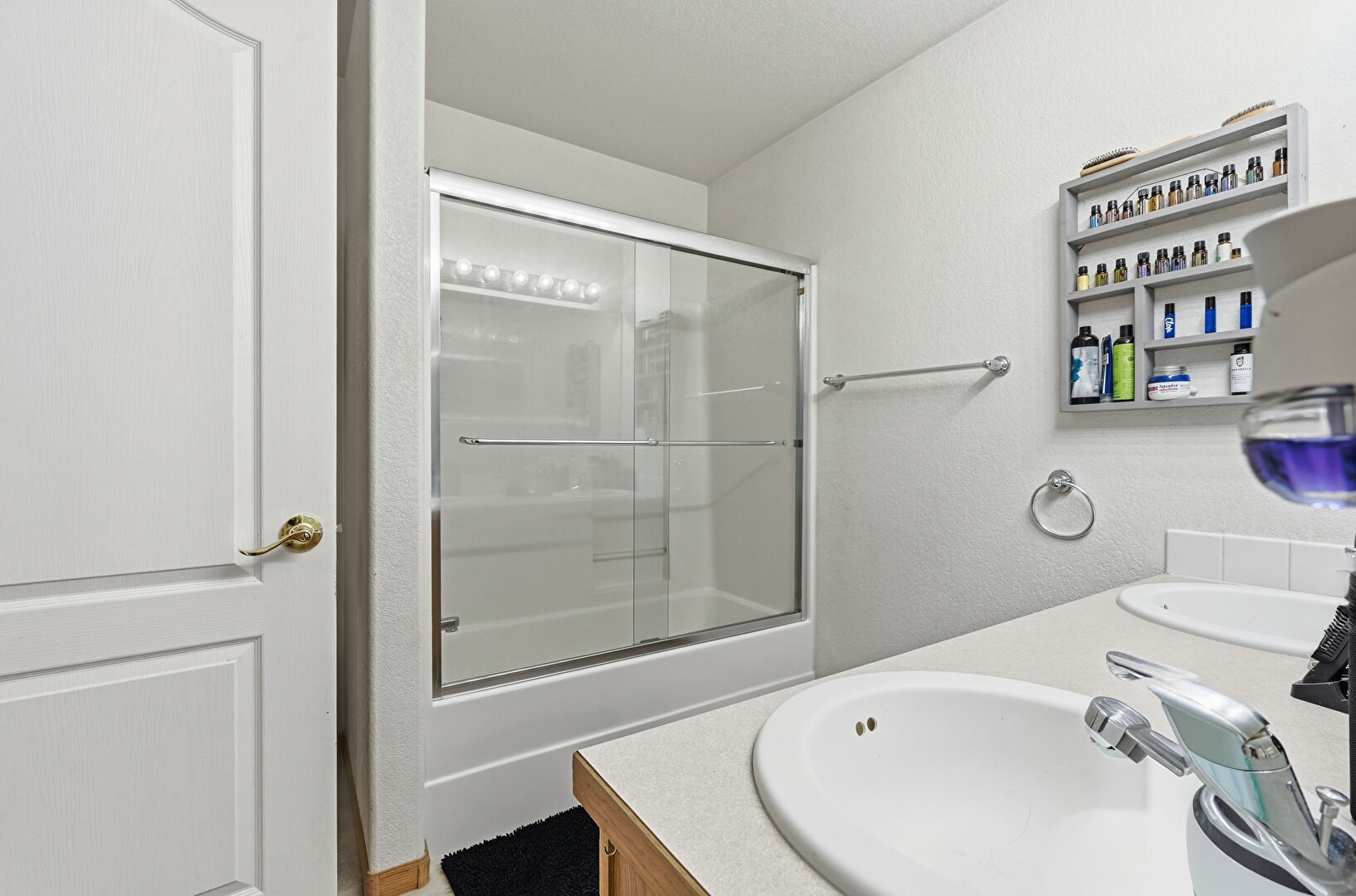Combined Bath Shower, Drywall, Tile Floor, Vanity, Vent, Full Bathroom
