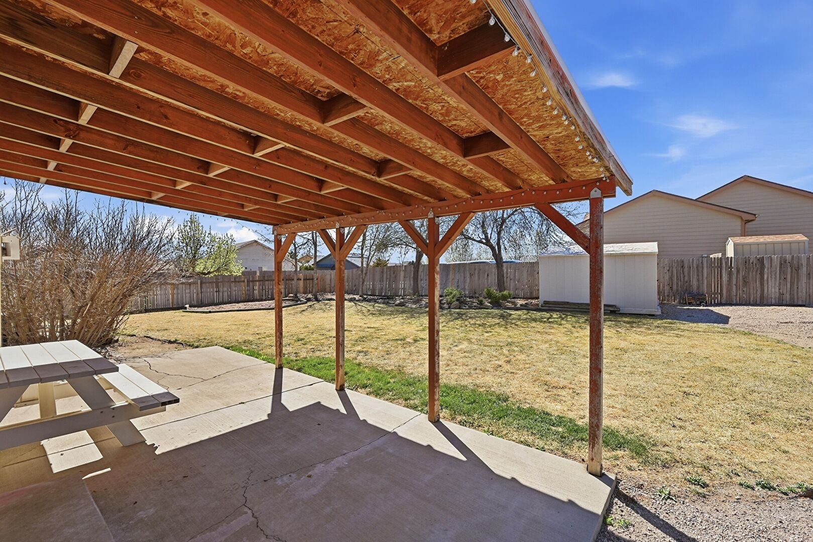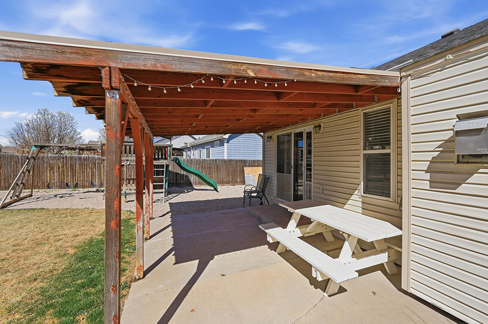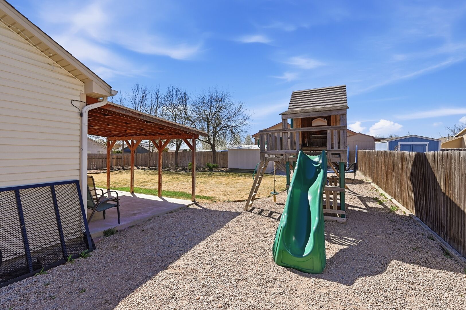 Lawn, Outdoor Structure, Patio, Pergola, Playground, Shed, Fence