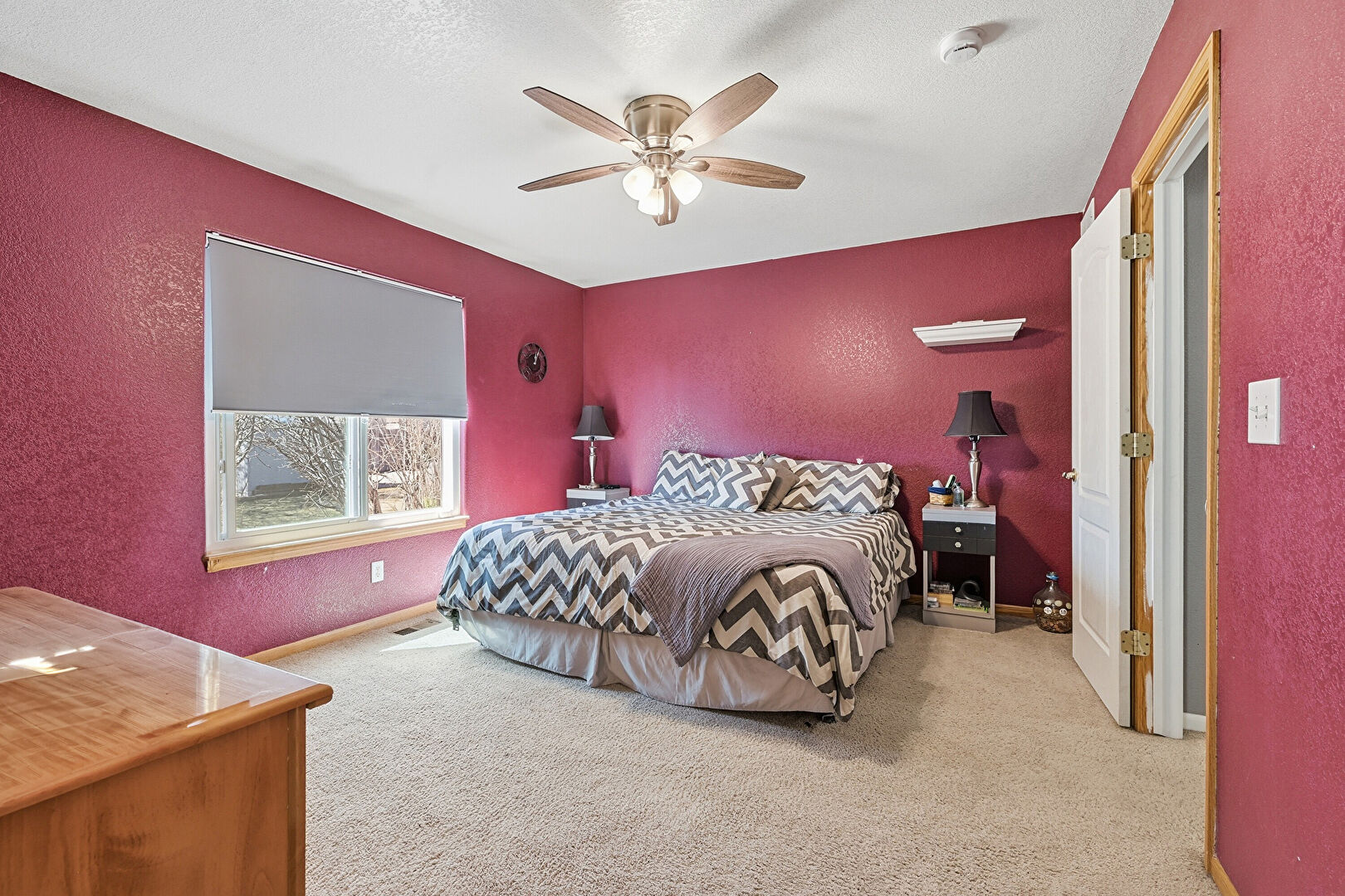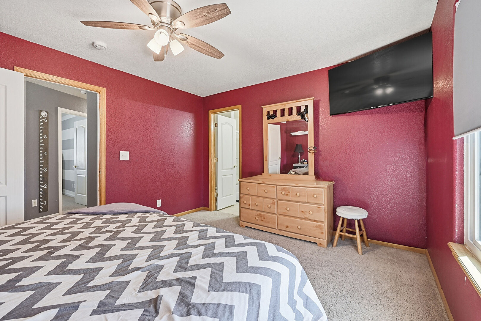 Baseboards Wall, Carpet, Ceiling Fan, Drywall, Natural Light
