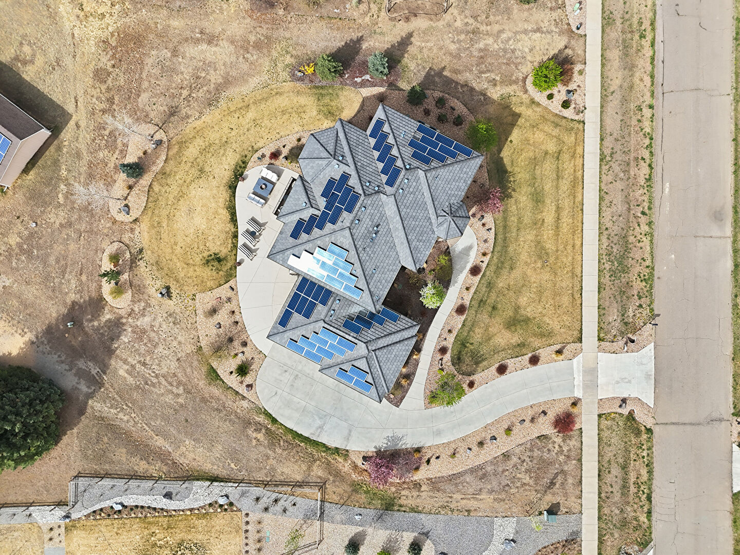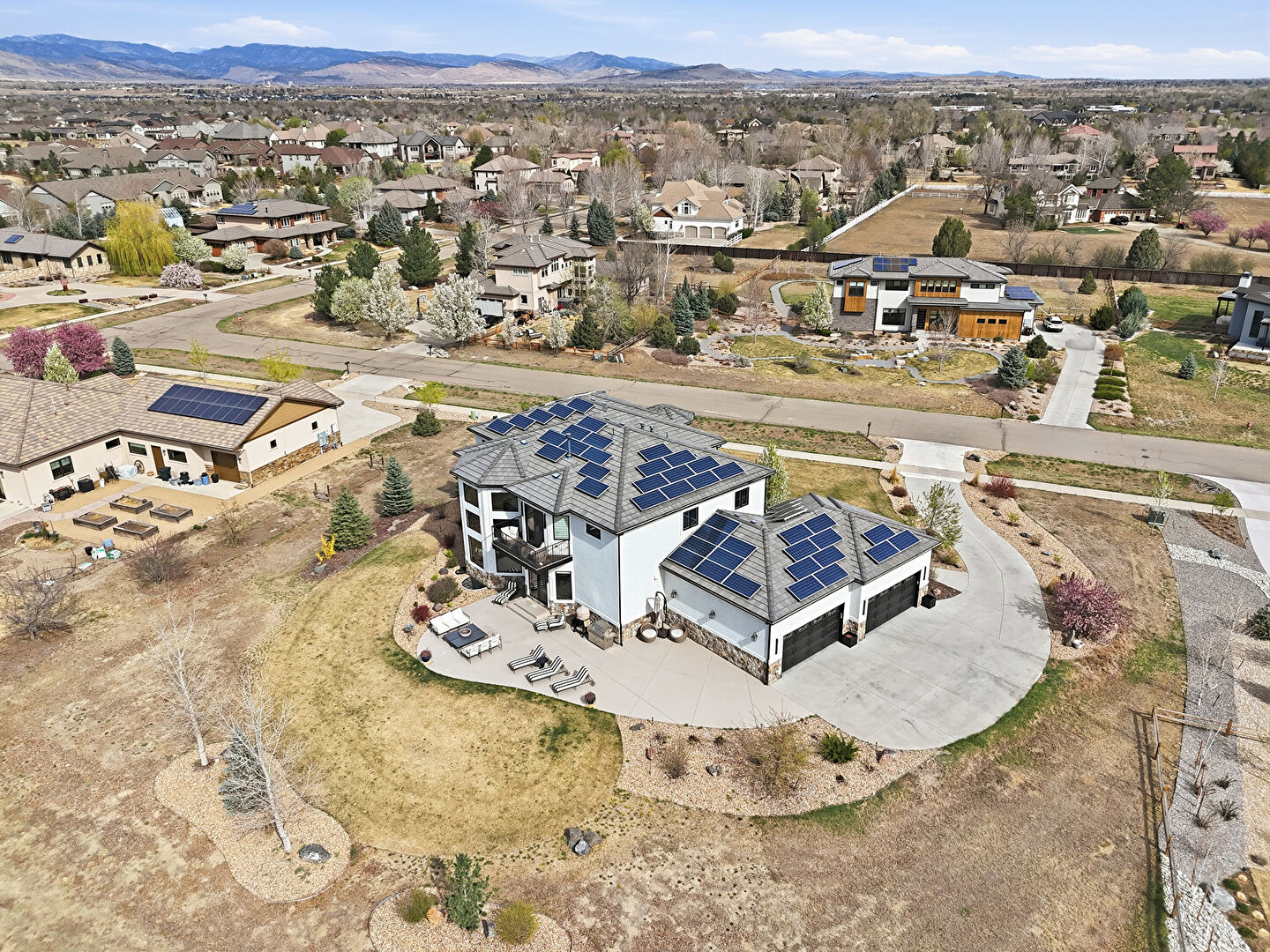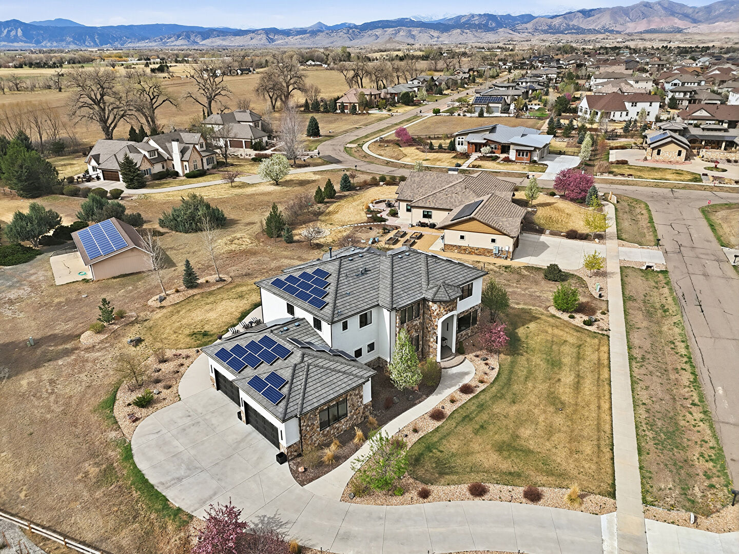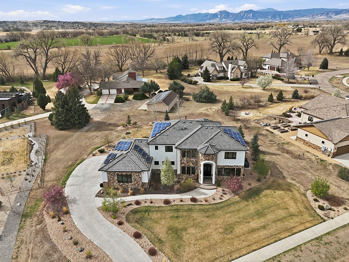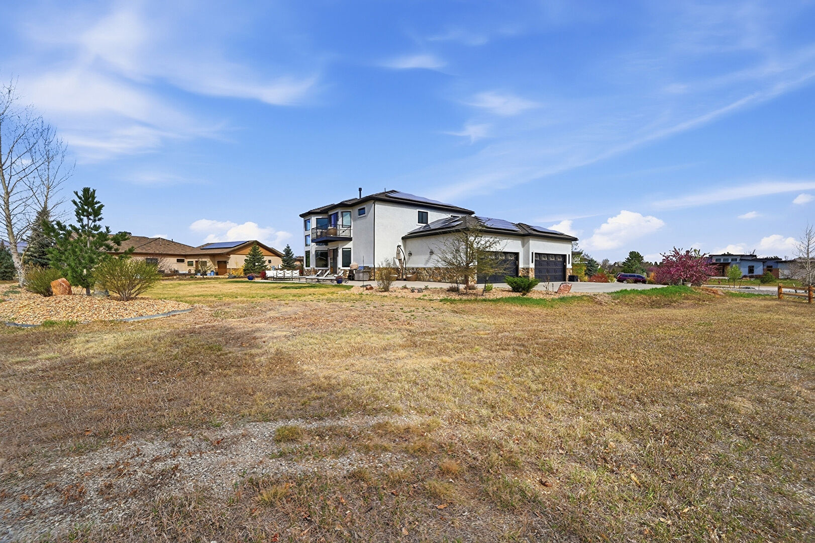 Balcony, Central Ac, Downspout, Driveway, Fence, Gutters, Lawn, Mountain View, Patio, Residential View, Rural View, Solar Panels, Stone Siding, Stoop, Stucco Siding, Tile Roof, Balcony, Central Ac, Downspout, Gutters, Mountain View, Patio, Residential View, Rural View, Stone Siding