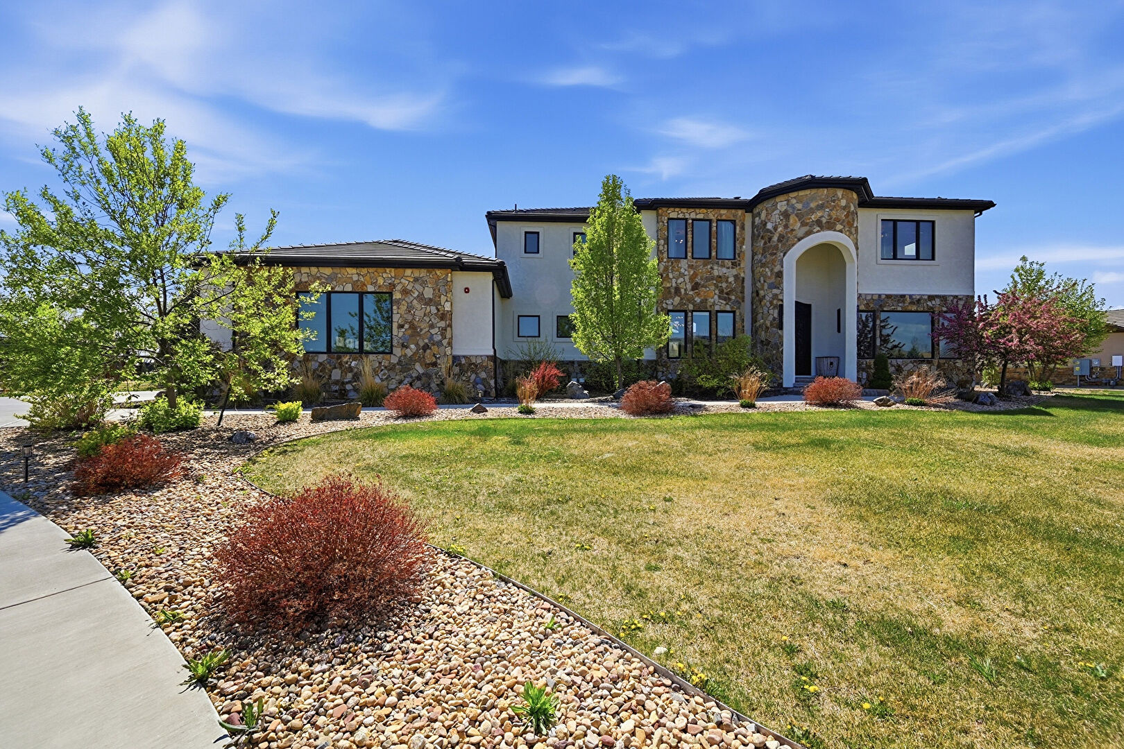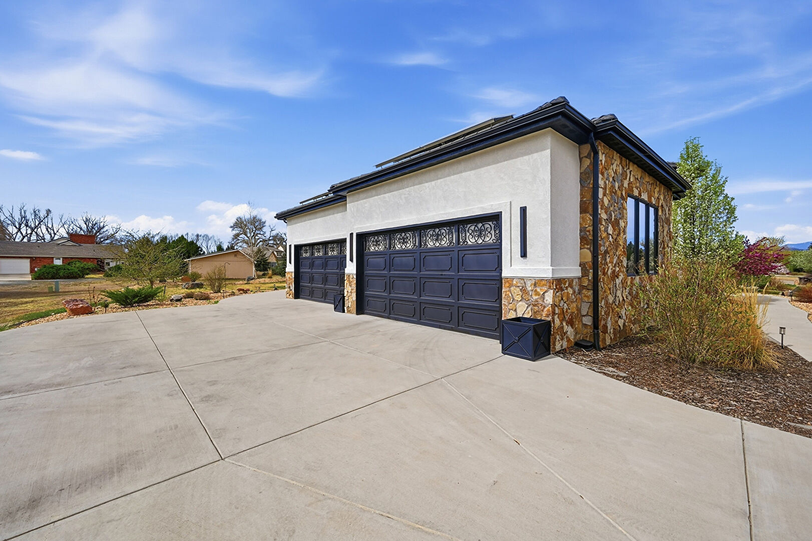 Downspout, Gutters, Stone Siding, Stucco Siding, Driveway