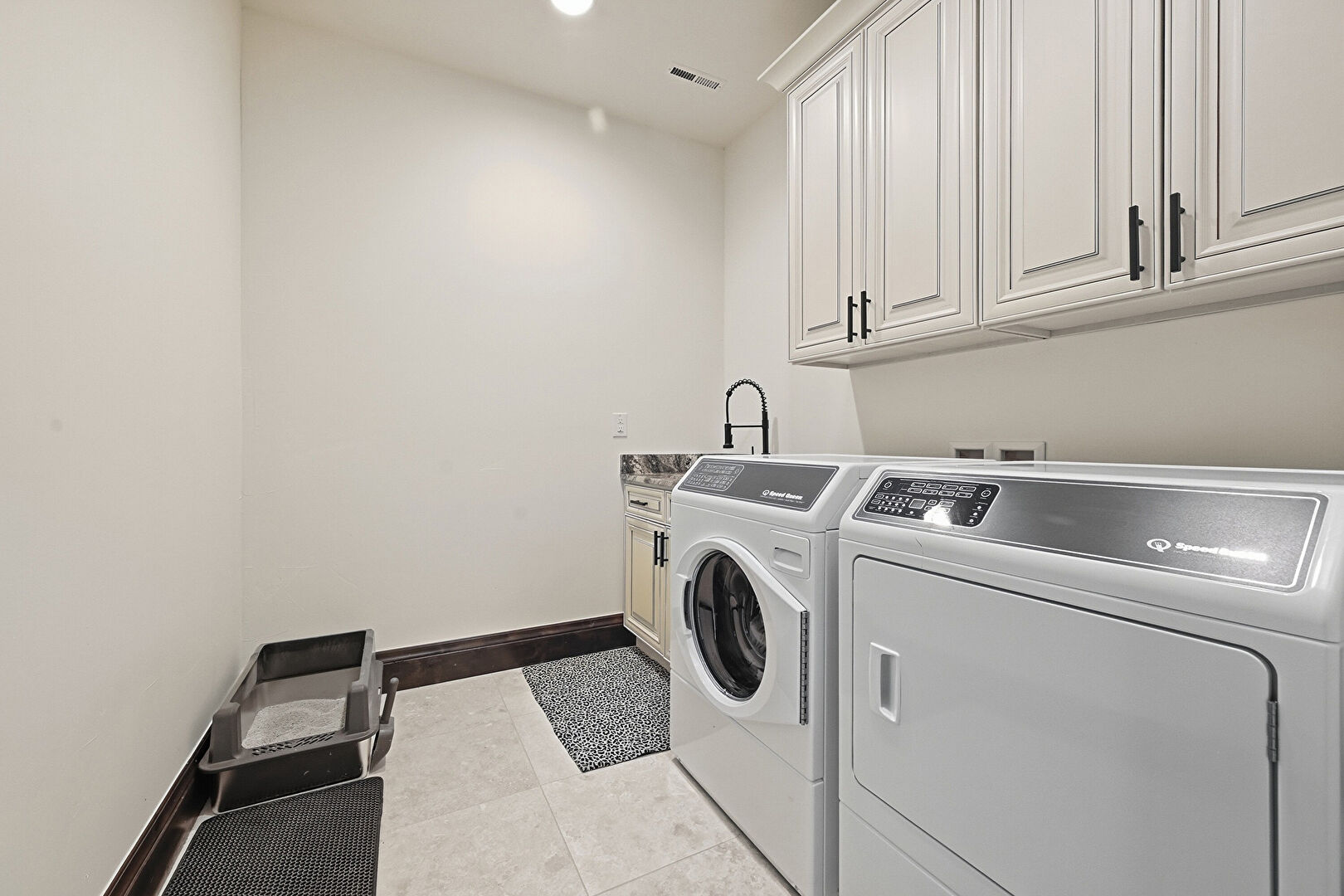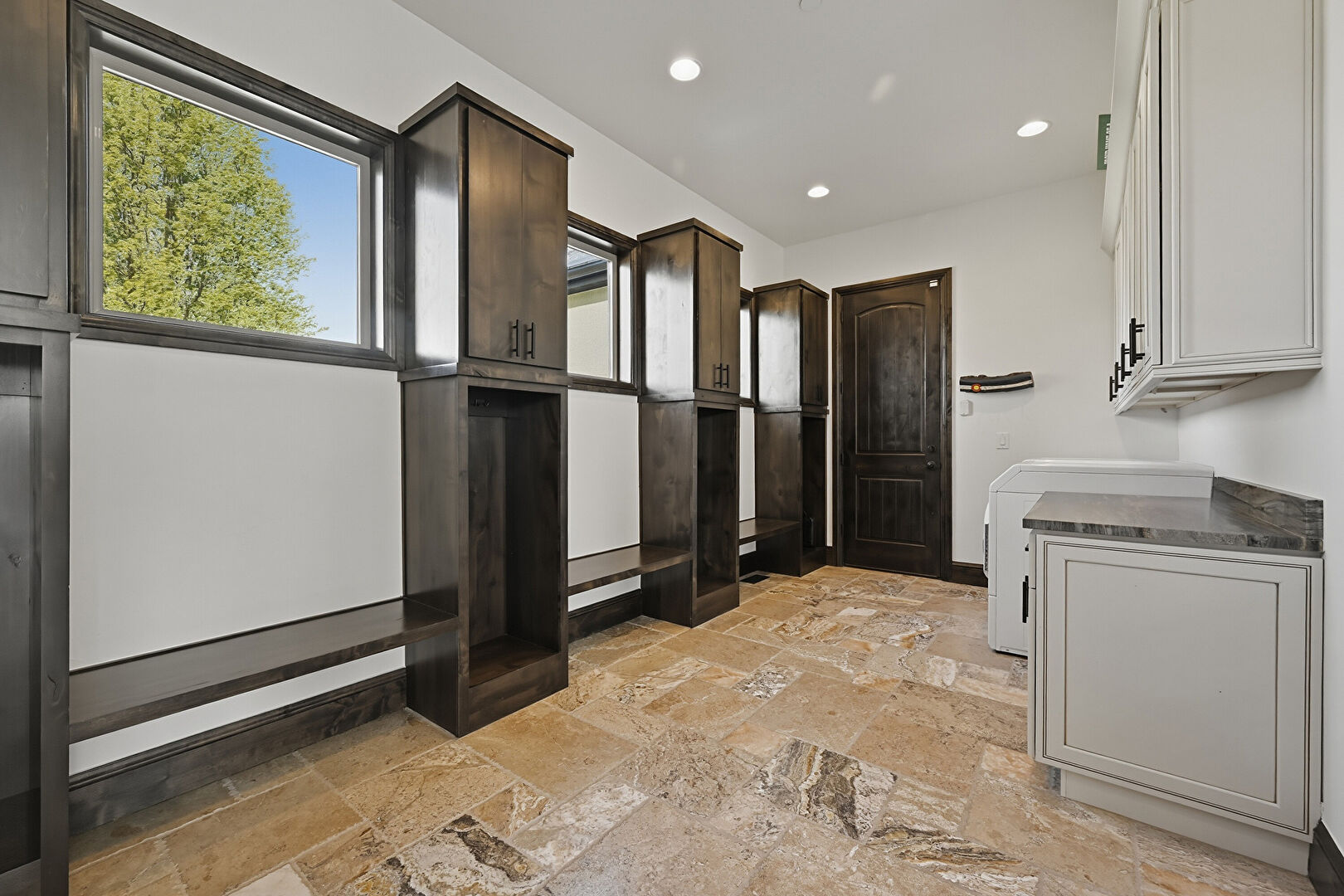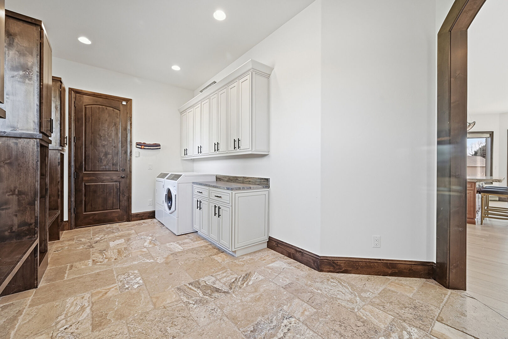 Baseboards Wall, Drywall, Laundry, Natural Light, Recessed Lighting, Stone Finish Floor, Vent, Washer Dryer, Washer Hookup, Laundry, Stone Finish Floor, Tile Floor