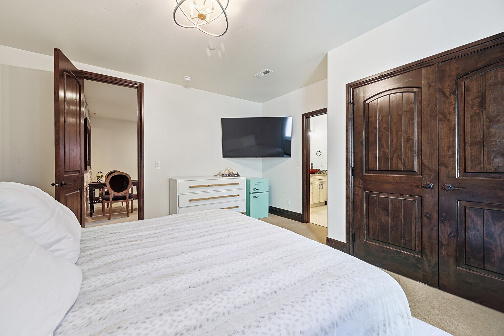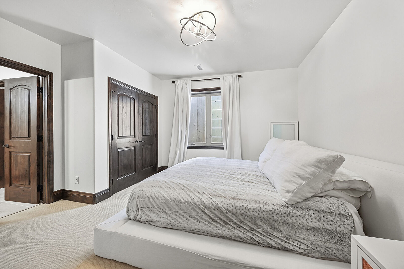 Baseboards Wall, Carpet, Closet, Drywall, Ensuite Bathroom, Notable Chandelier, Vent, Closet, Natural Light