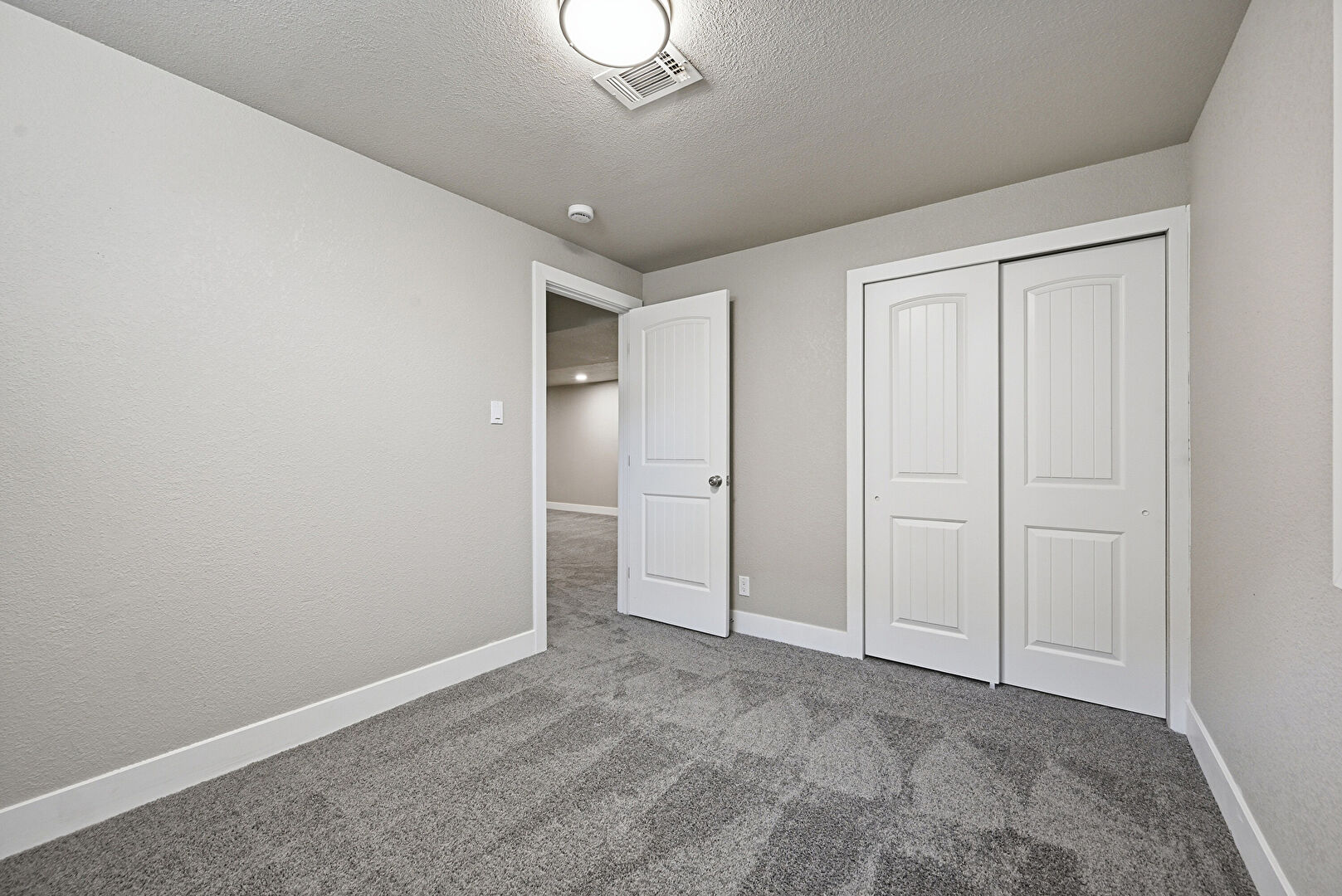 Baseboards Wall, Carpet, Natural Light, Smoke Carbon Monoxide Detector, Textured Ceiling, Vent, Drywall