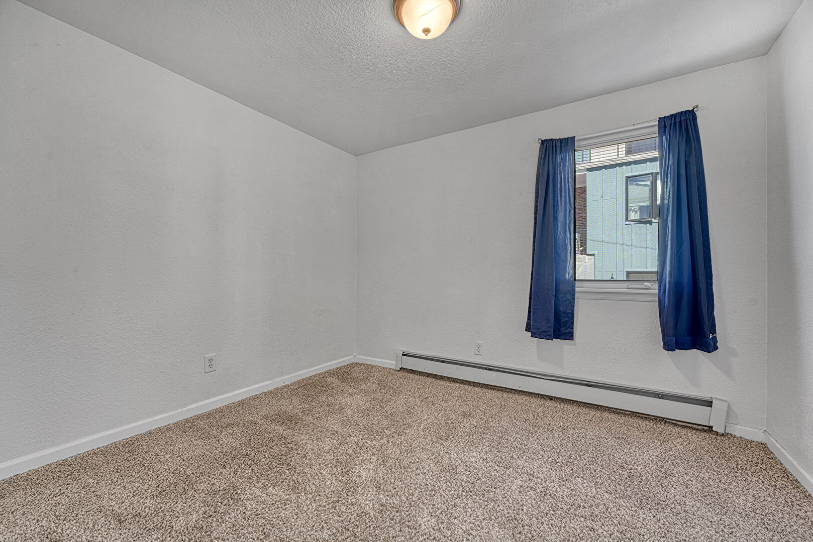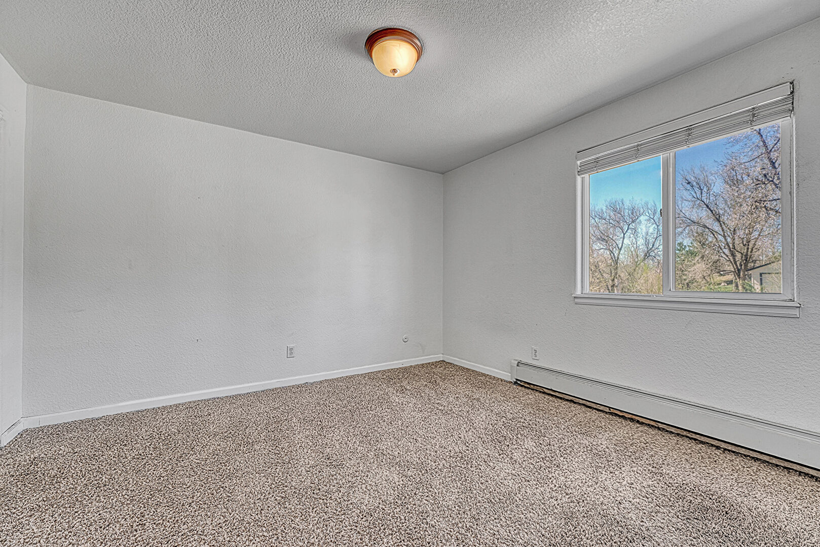 Baseboard Radiator, Baseboards Wall, Carpet, Natural Light, Textured Ceiling, Textured Wall, Closet, Textured Ceiling