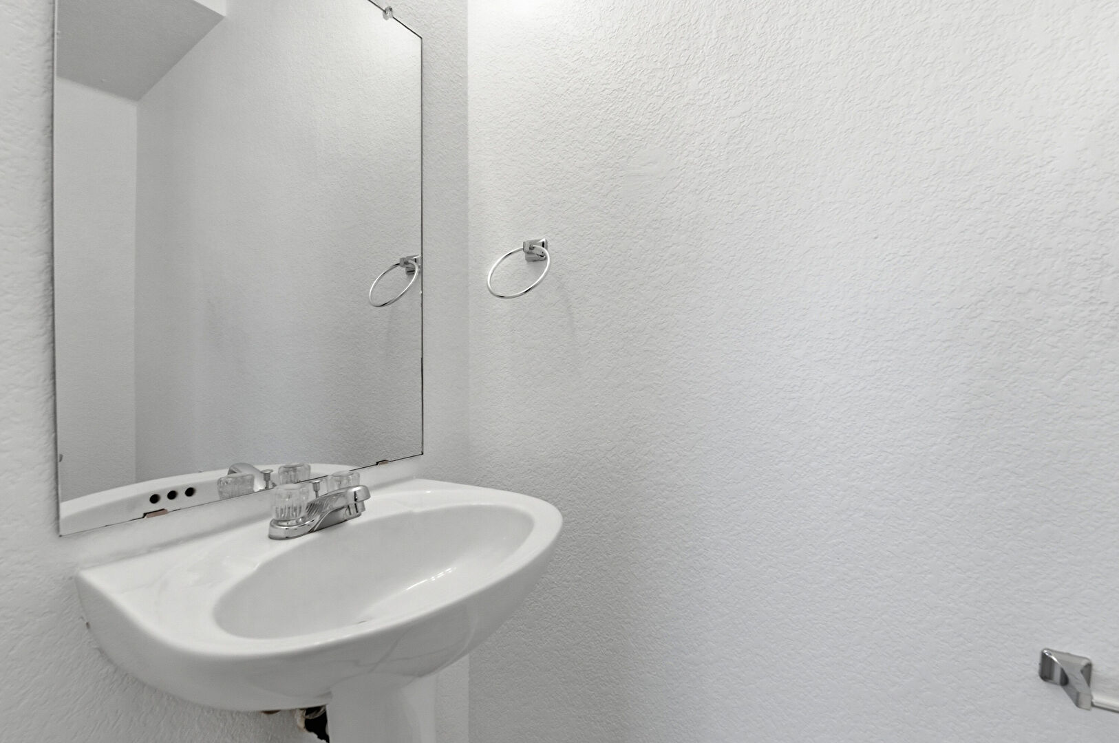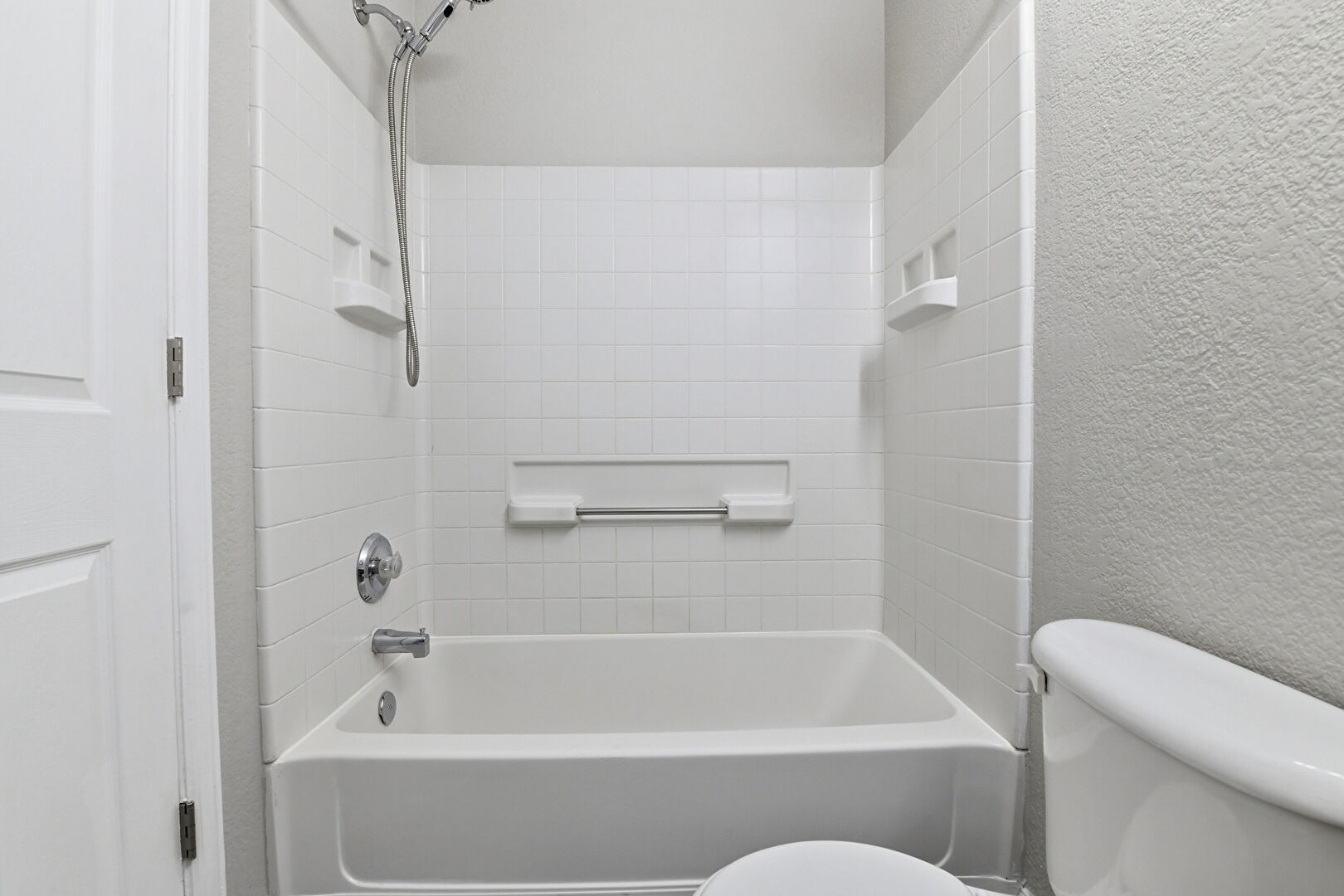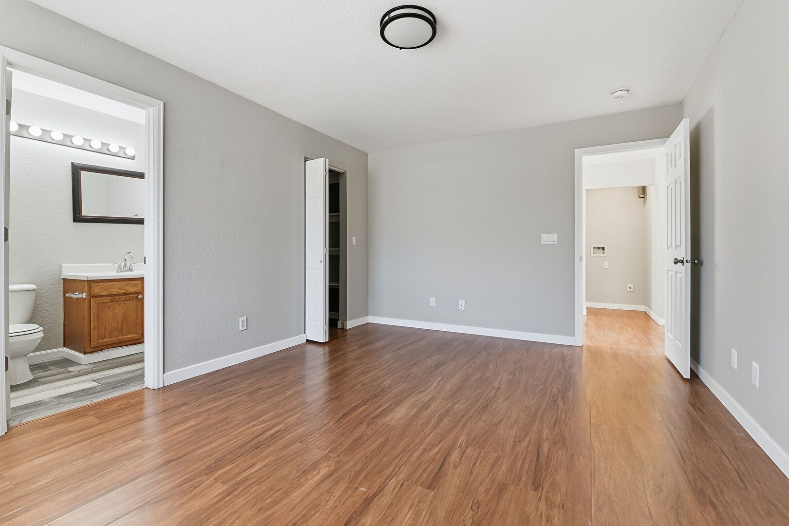 Baseboards Wall, Ensuite Bathroom, Natural Light, Textured Wall, Vent, Wood Finish Floor, Baseboards Wall, Drywall