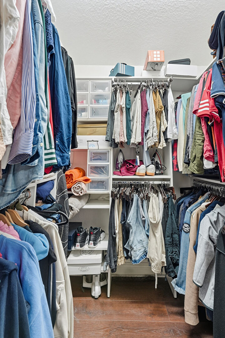 Crown Molding, Double Vanity, Drywall, Full Bathroom, Recessed Lighting, Textured Ceiling, Wood Finish Floor