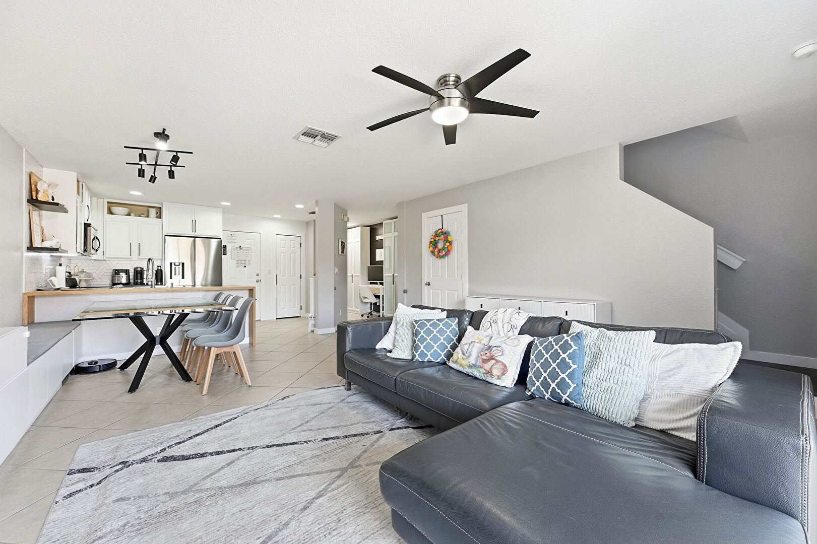 Accent Wall, Baseboards Wall, Ceiling Fan, Drywall, Natural Light, Recessed Lighting, Smoke Carbon Monoxide Detector, Tile Floor, U Shaped Kitchen, Vent, Drywall, Tile Floor, Track Lighting, Vent