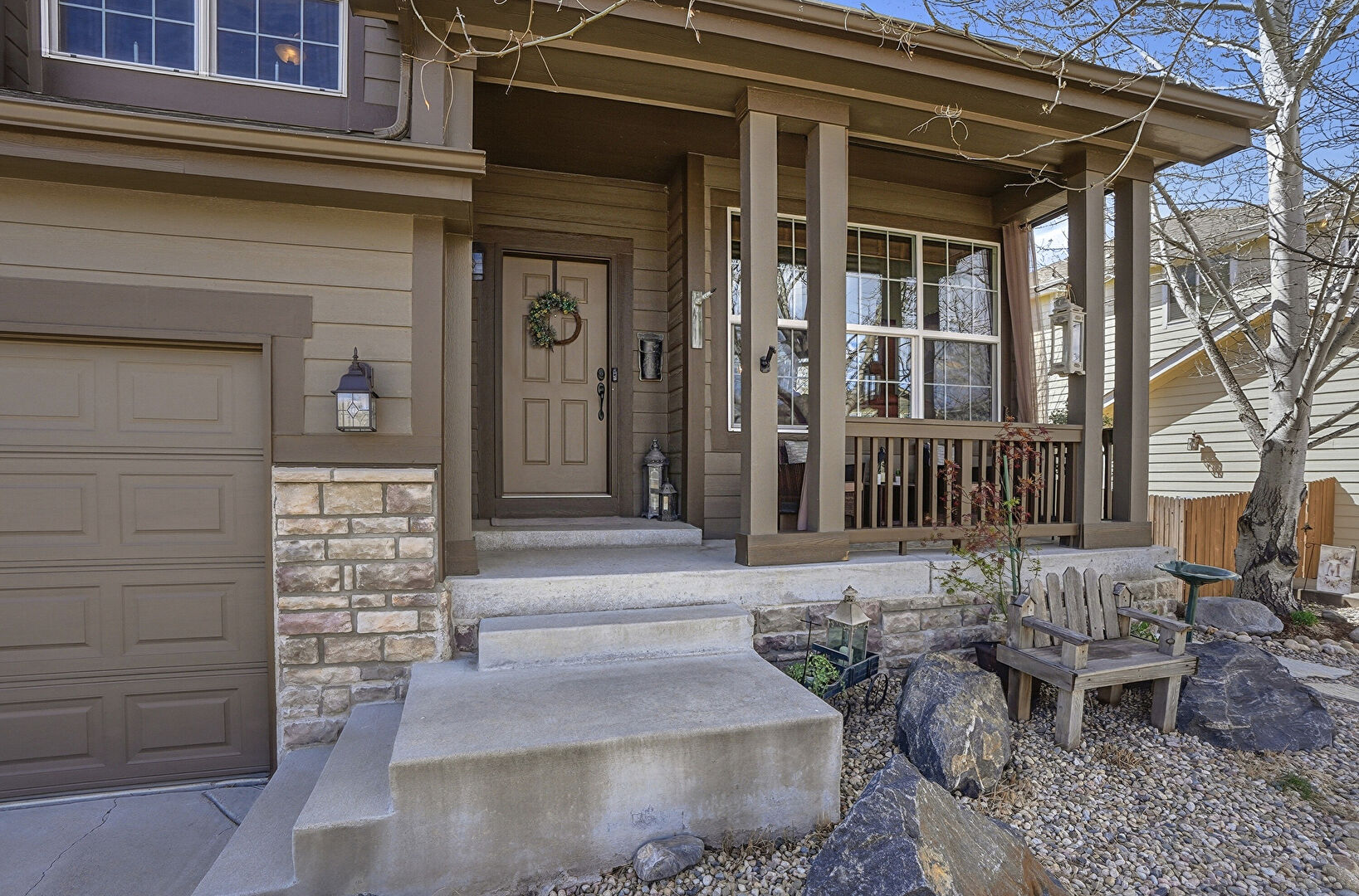 Built In Garage, Porch, Stone Siding, Horizontal Siding