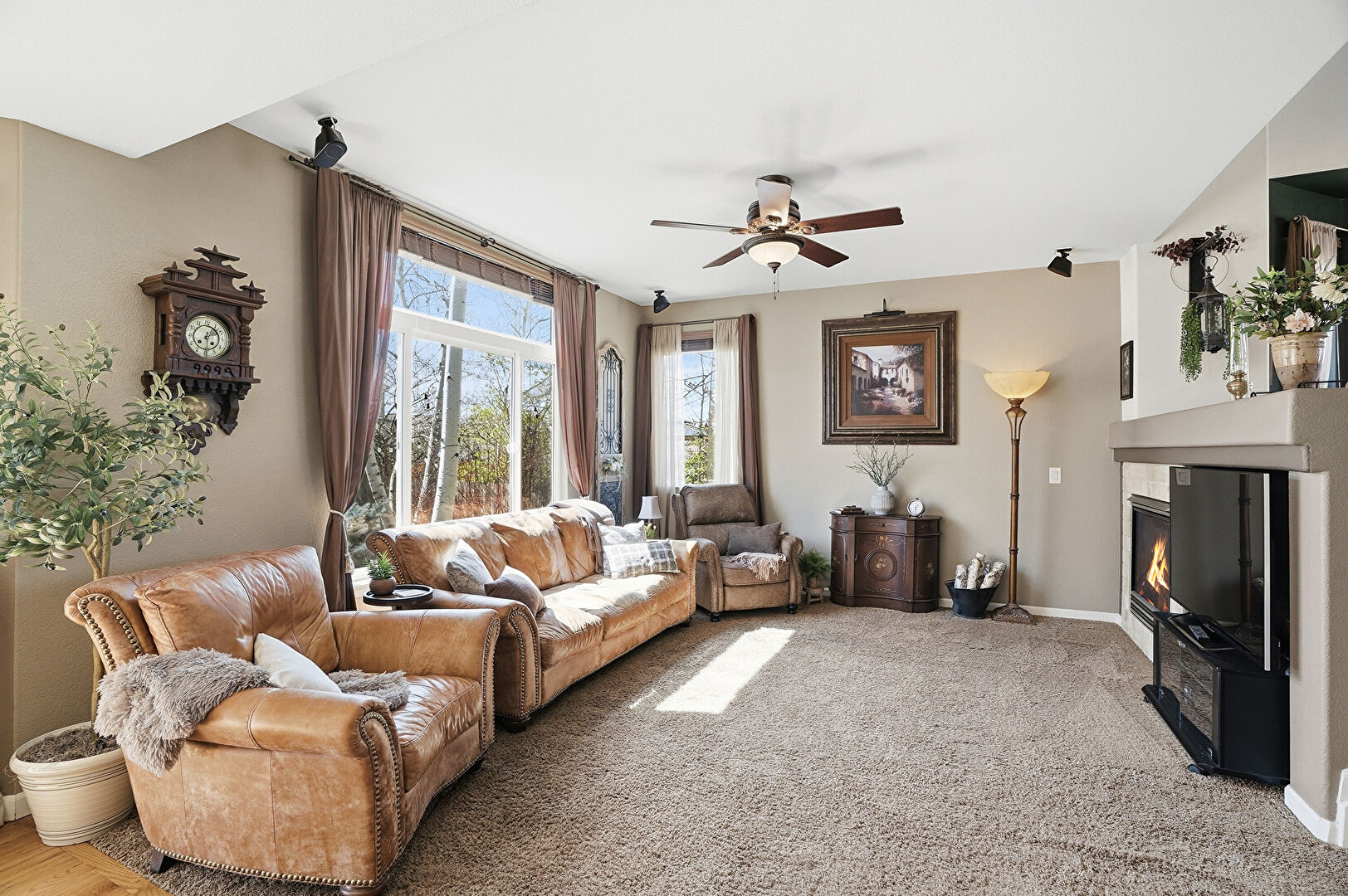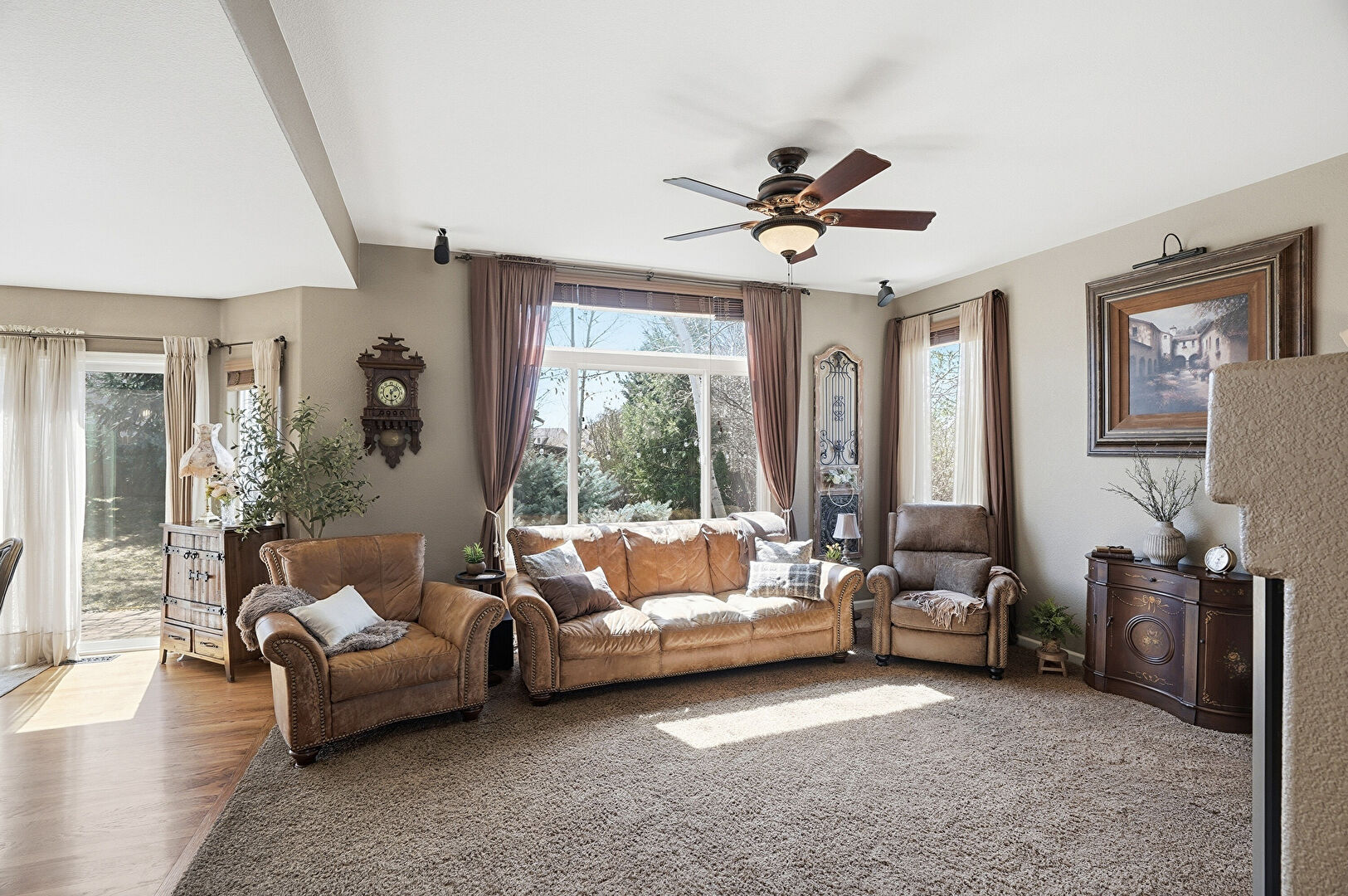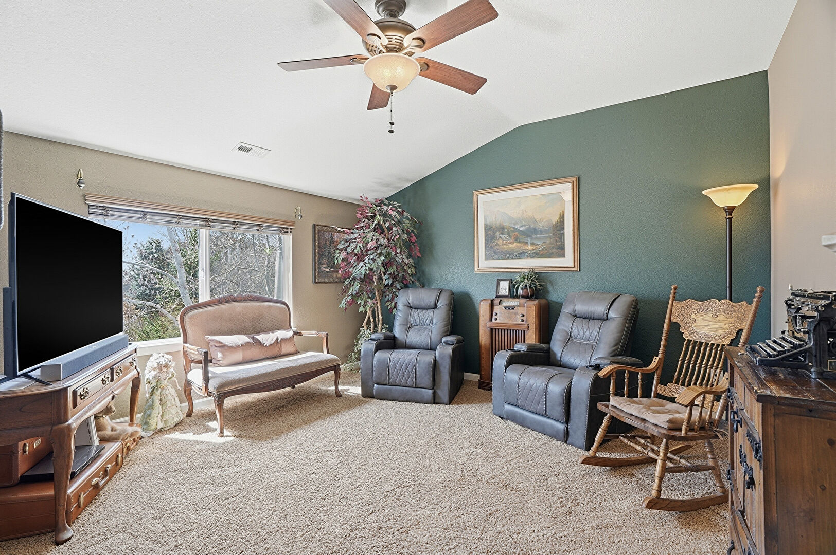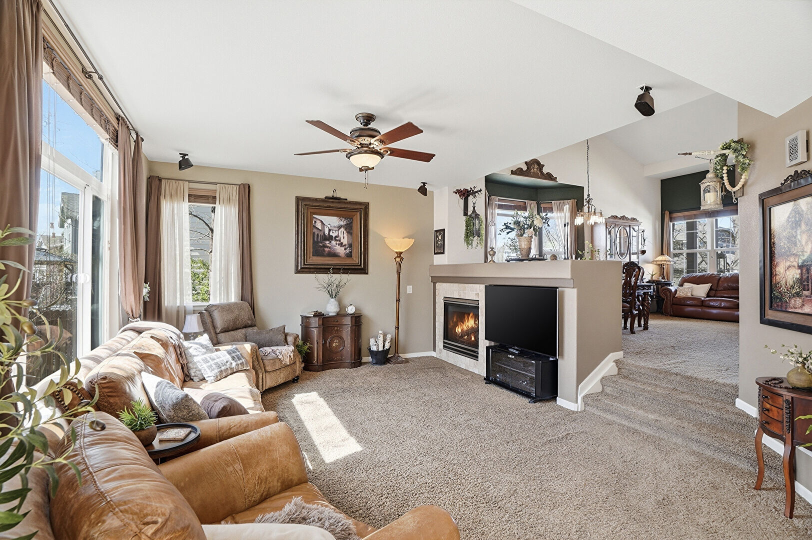 Arched Walkways, Baseboards Wall, Carpet, Cathedral Ceiling, Ceiling Fan, Drywall, Ensuite Bathroom, Fireplace, Natural Light, Smoke Carbon Monoxide Detector, Vaulted Ceiling, Vent, Baseboards Wall, Carpet, Drywall, Natural Light, Vaulted Ceiling