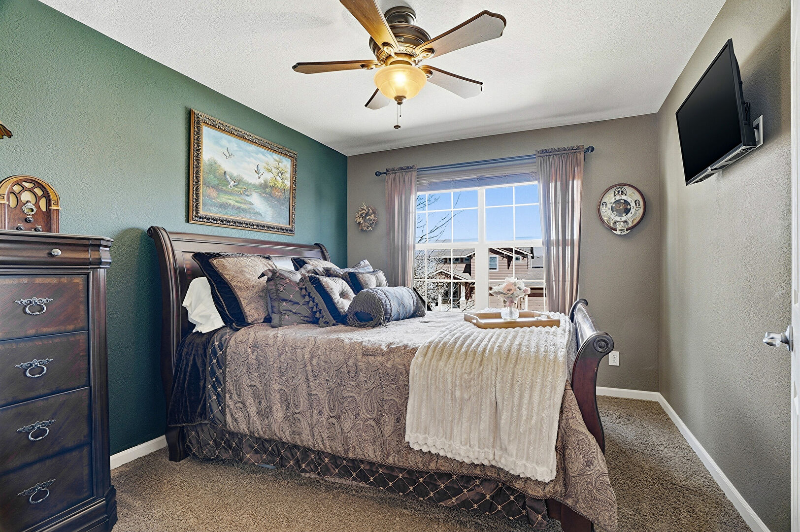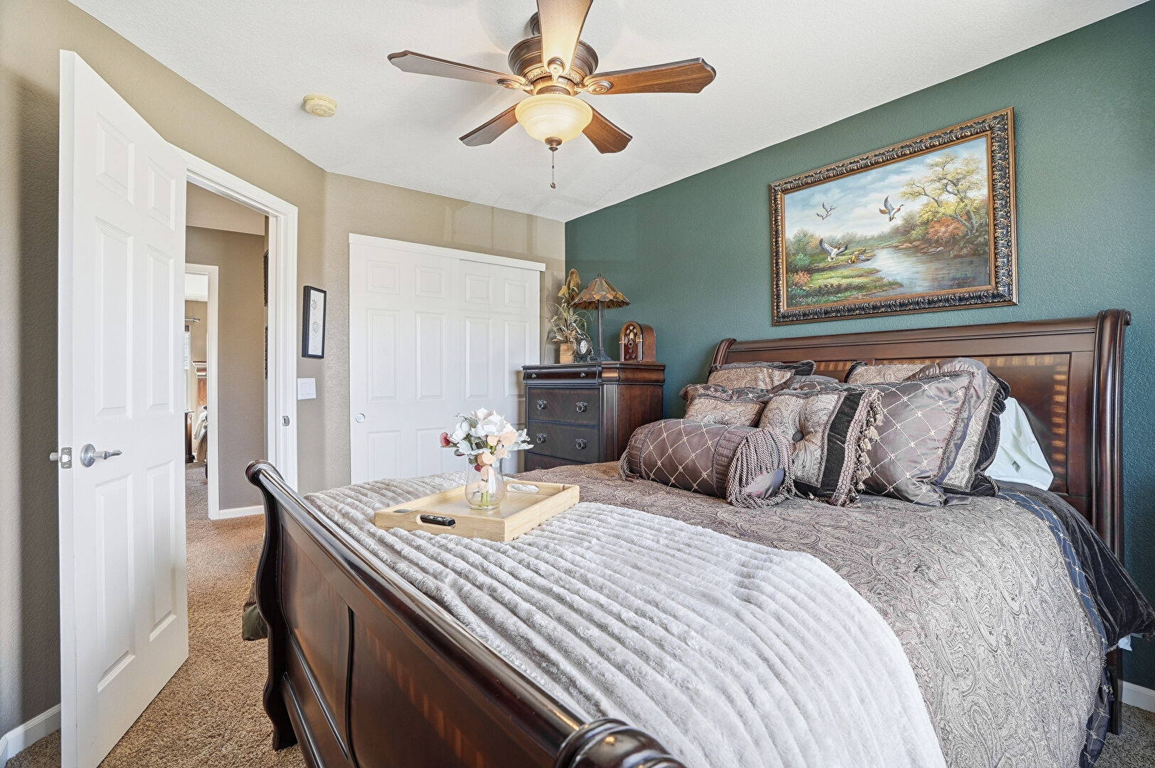 Baseboards Wall, Carpet, Ceiling Fan, Closet, Drywall, Natural Light, Textured Wall, Ceiling Fan, Smoke Carbon Monoxide Detector