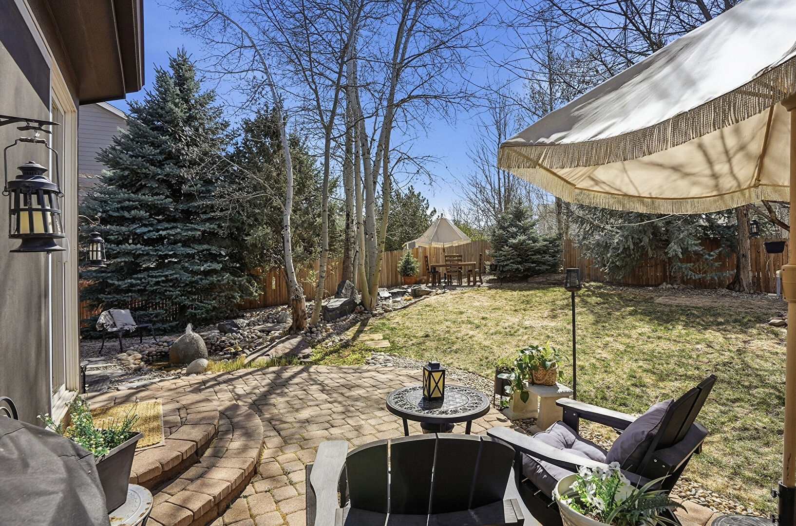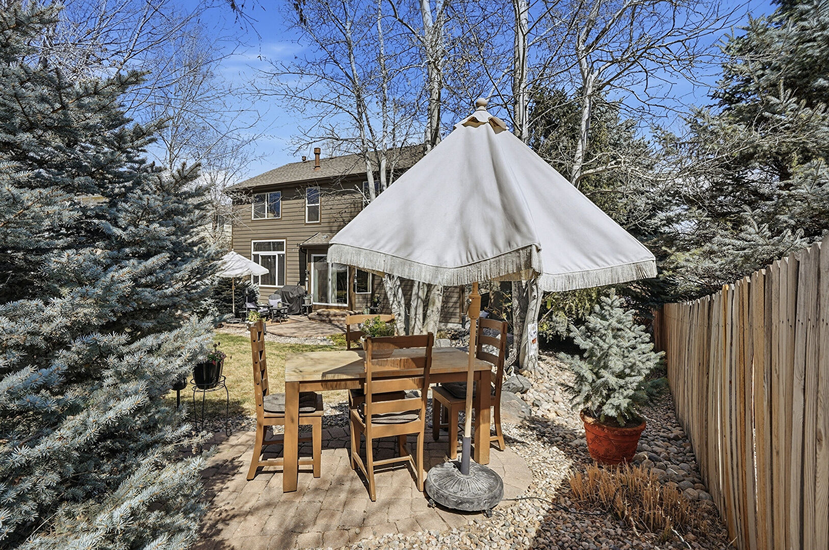 Chimney, Gazebo, Horizontal Siding, Outdoor Dining Area, Patio, Fence
