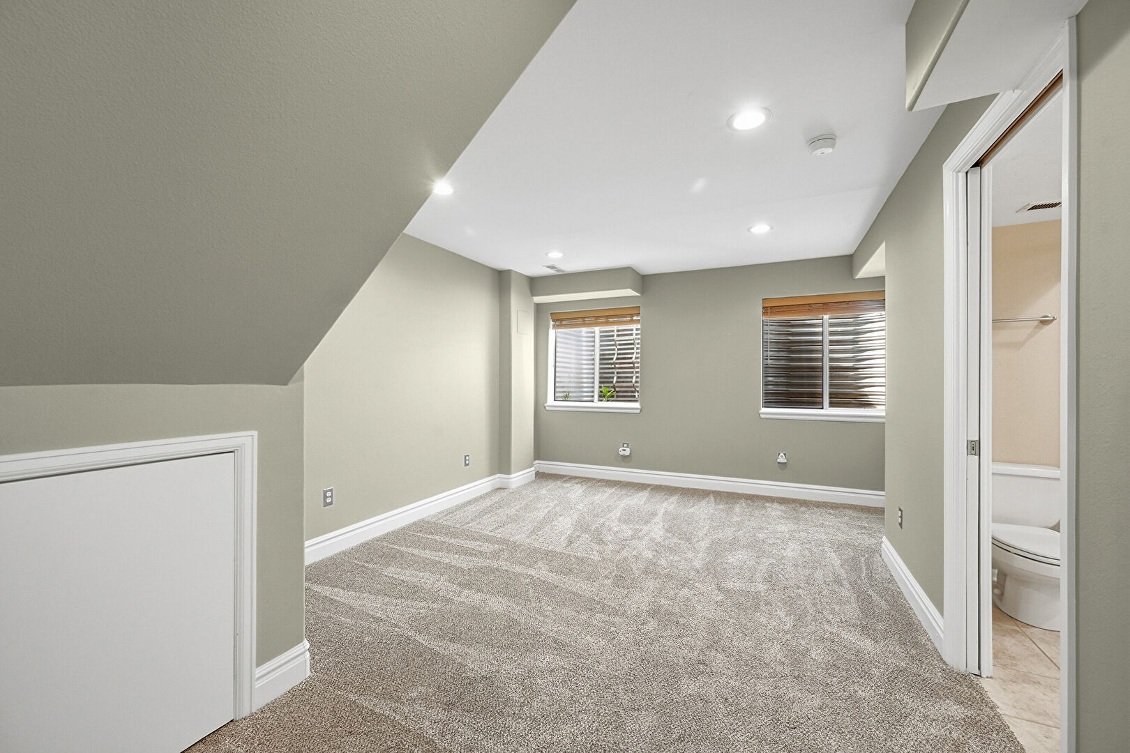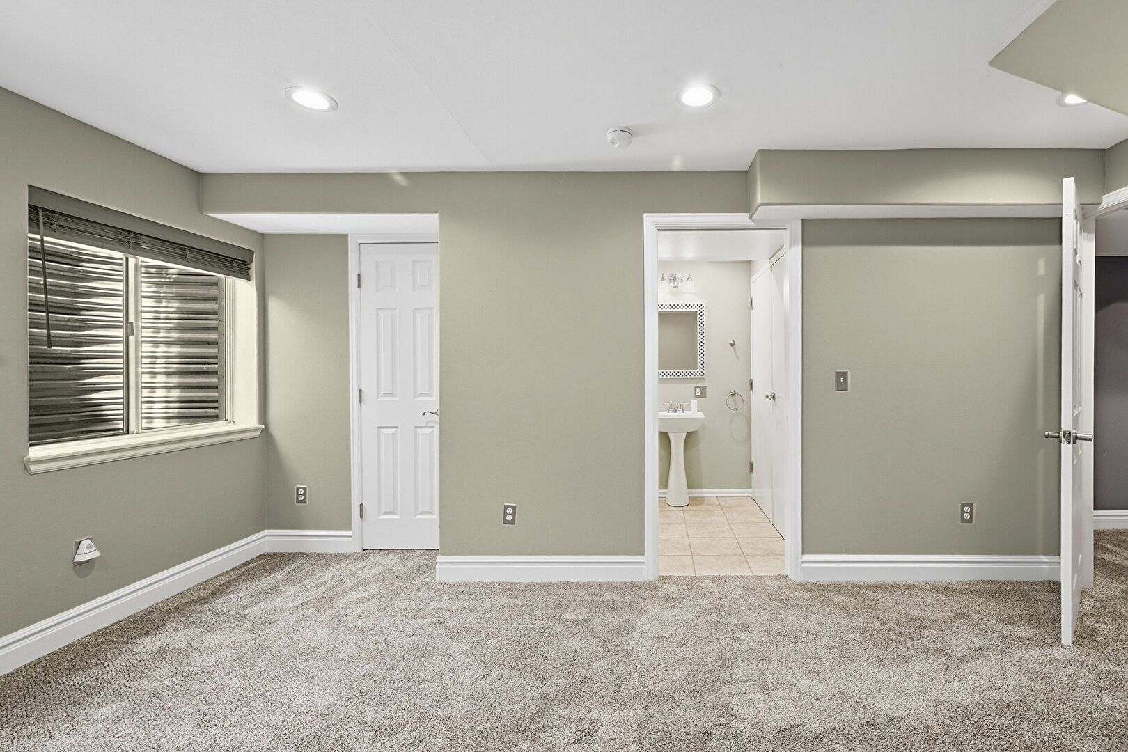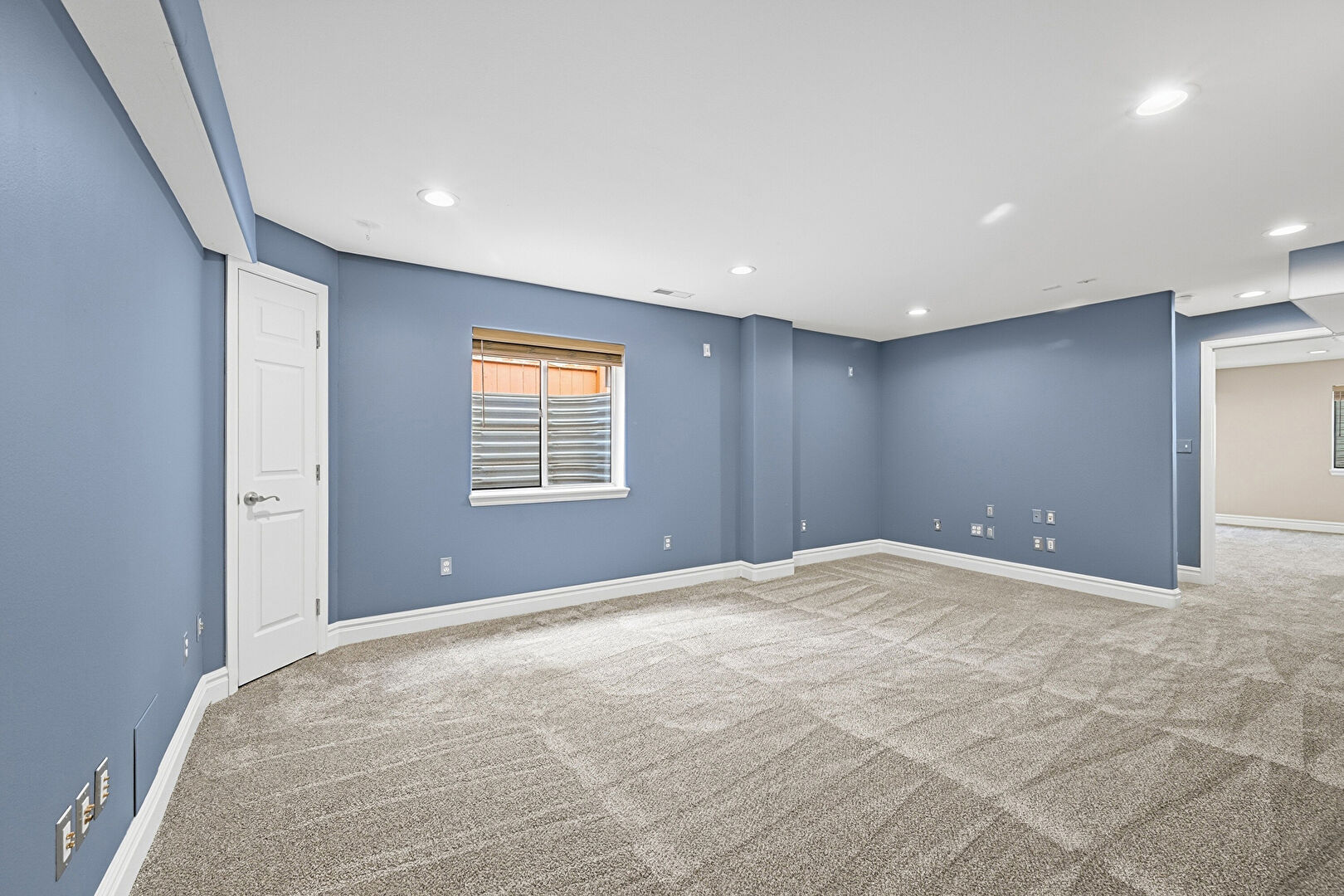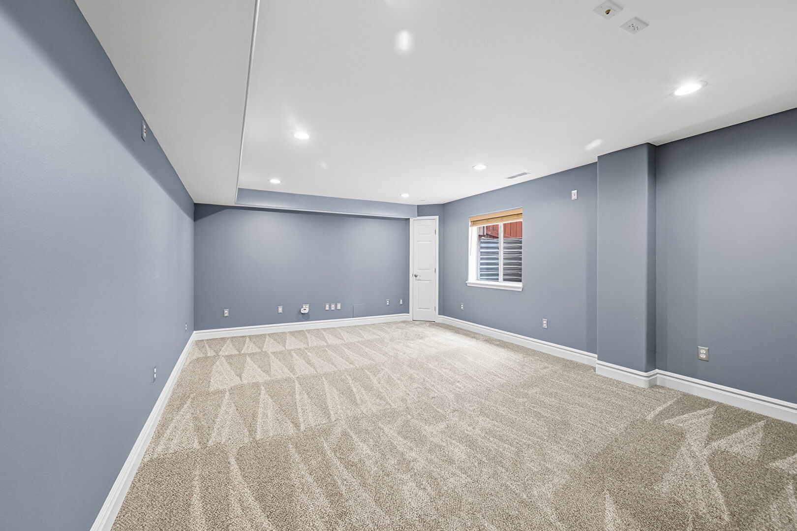 Baseboards Wall, Basement, Carpet, Drywall, Recessed Lighting, Baseboards Wall, Natural Light