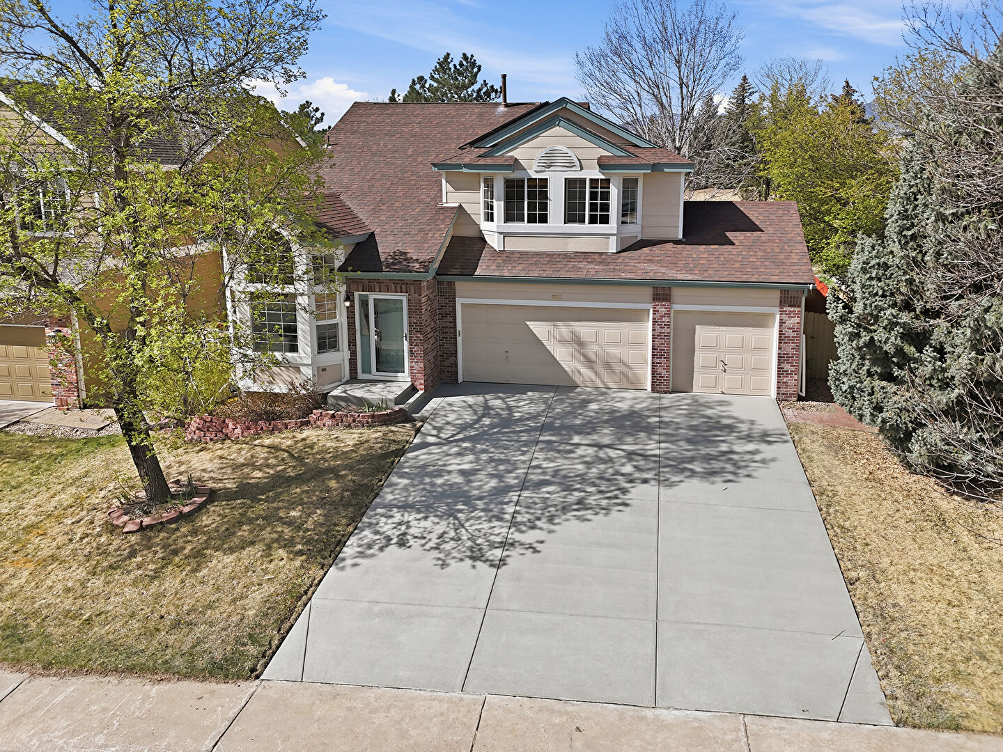 Brick Siding, Built In Garage, Driveway, Fence, Gutters, Horizontal Siding, Lawn, Shingle Roof, Brick Siding, Built In Garage, Downspout