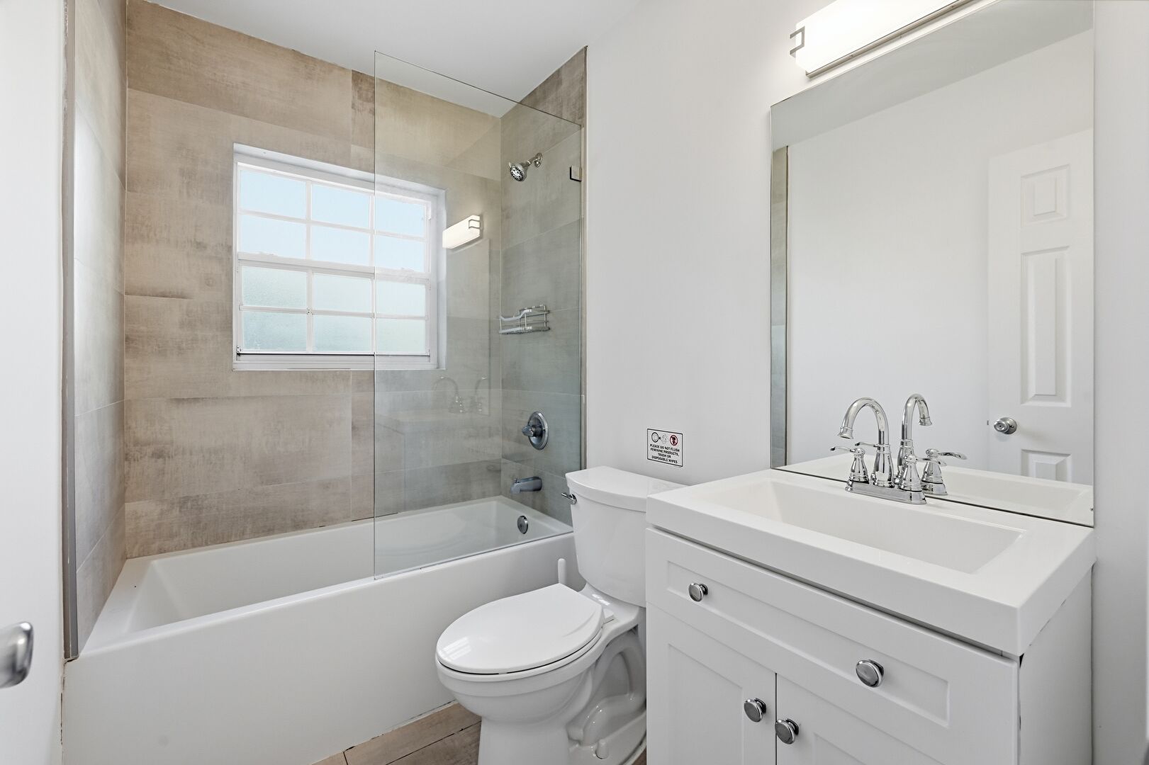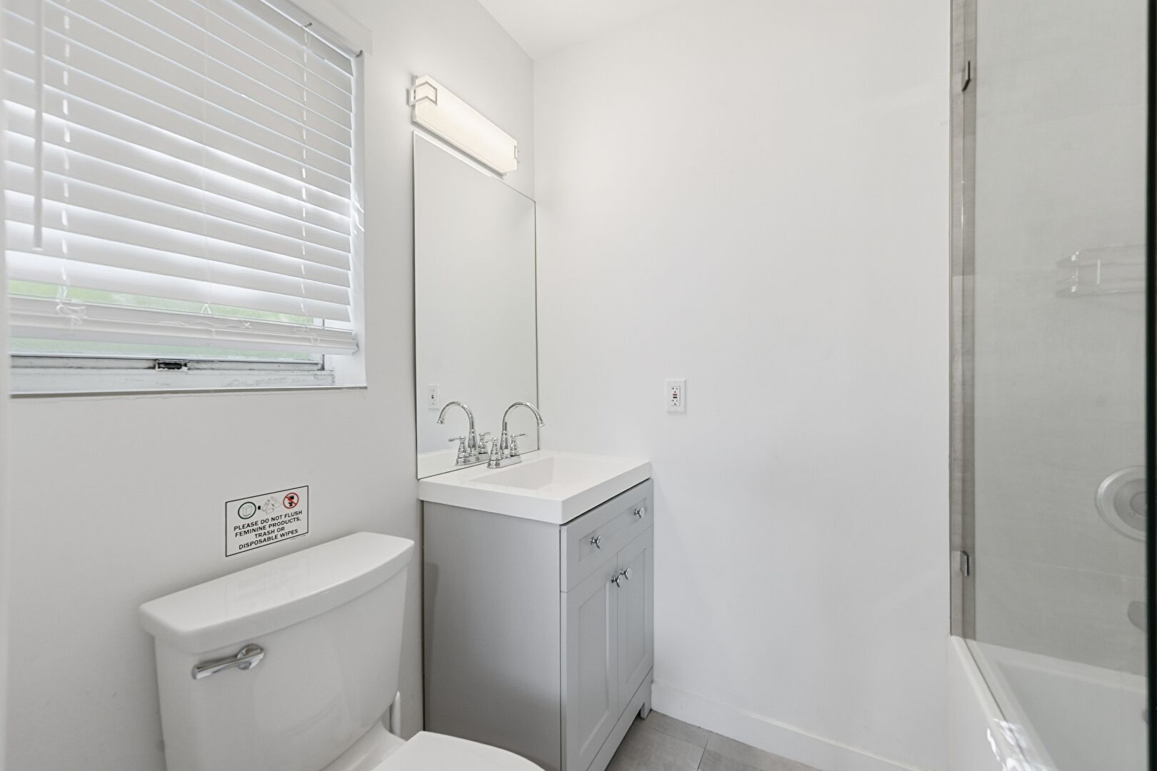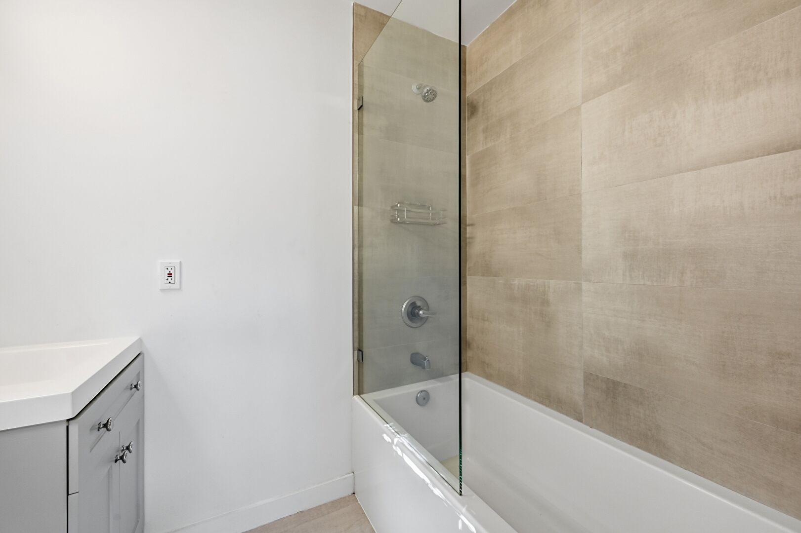 Baseboards Wall, Combined Bath Shower, Drywall, Full Bathroom, Natural Light, Tile Floor, Vanity, Combined Bath Shower, Drywall, Full Bathroom, Natural Light