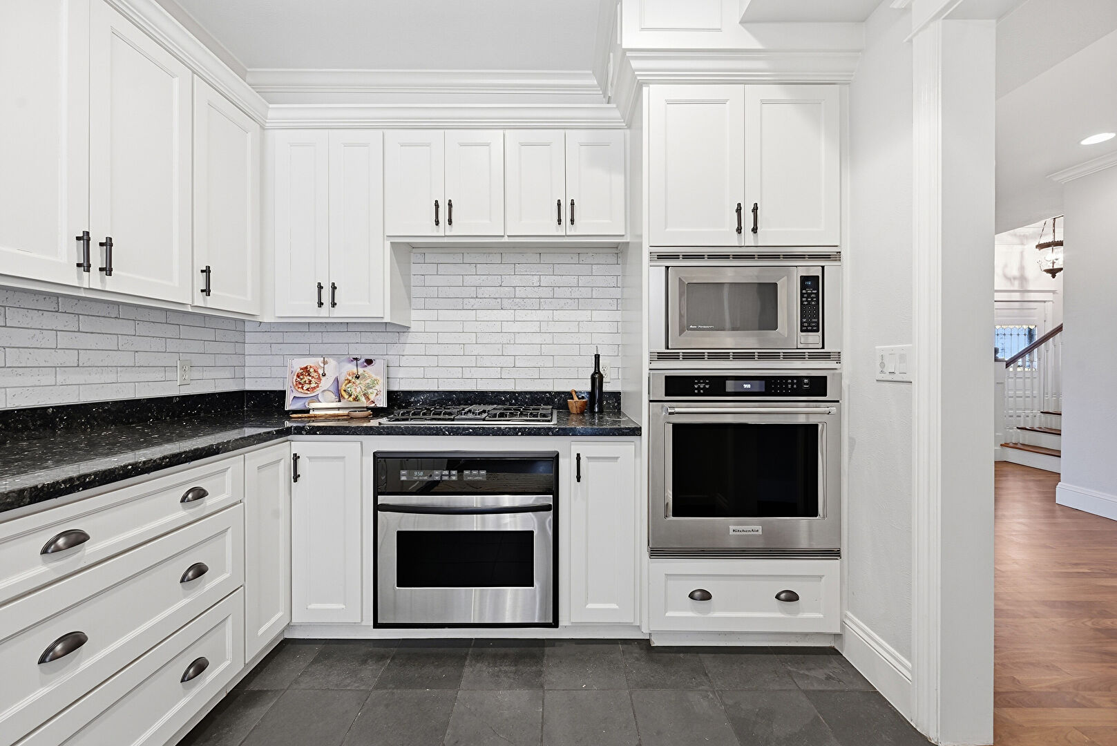 Baseboards Wall, Crown Molding, Drywall, Wood Finish Floor, Stairs
