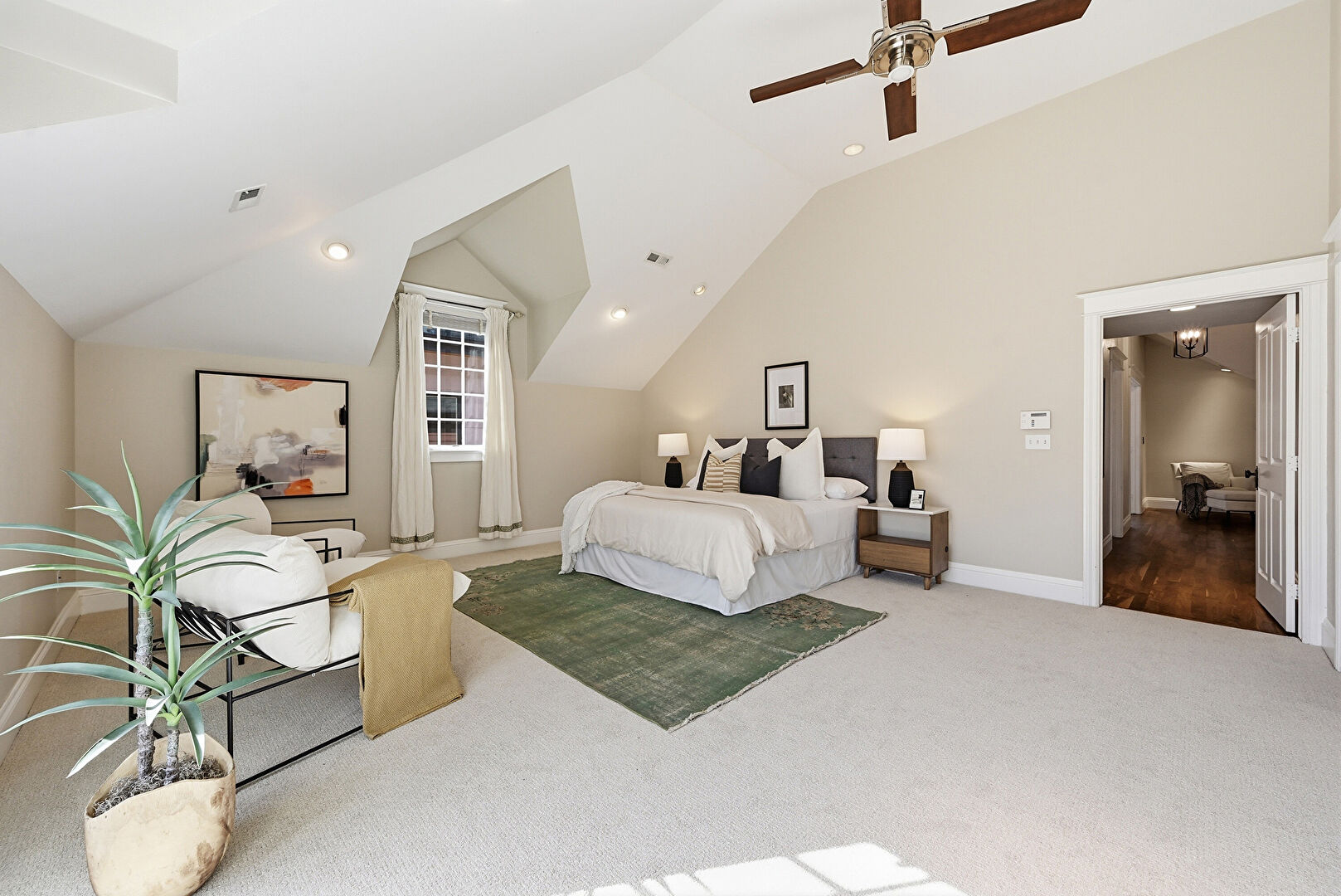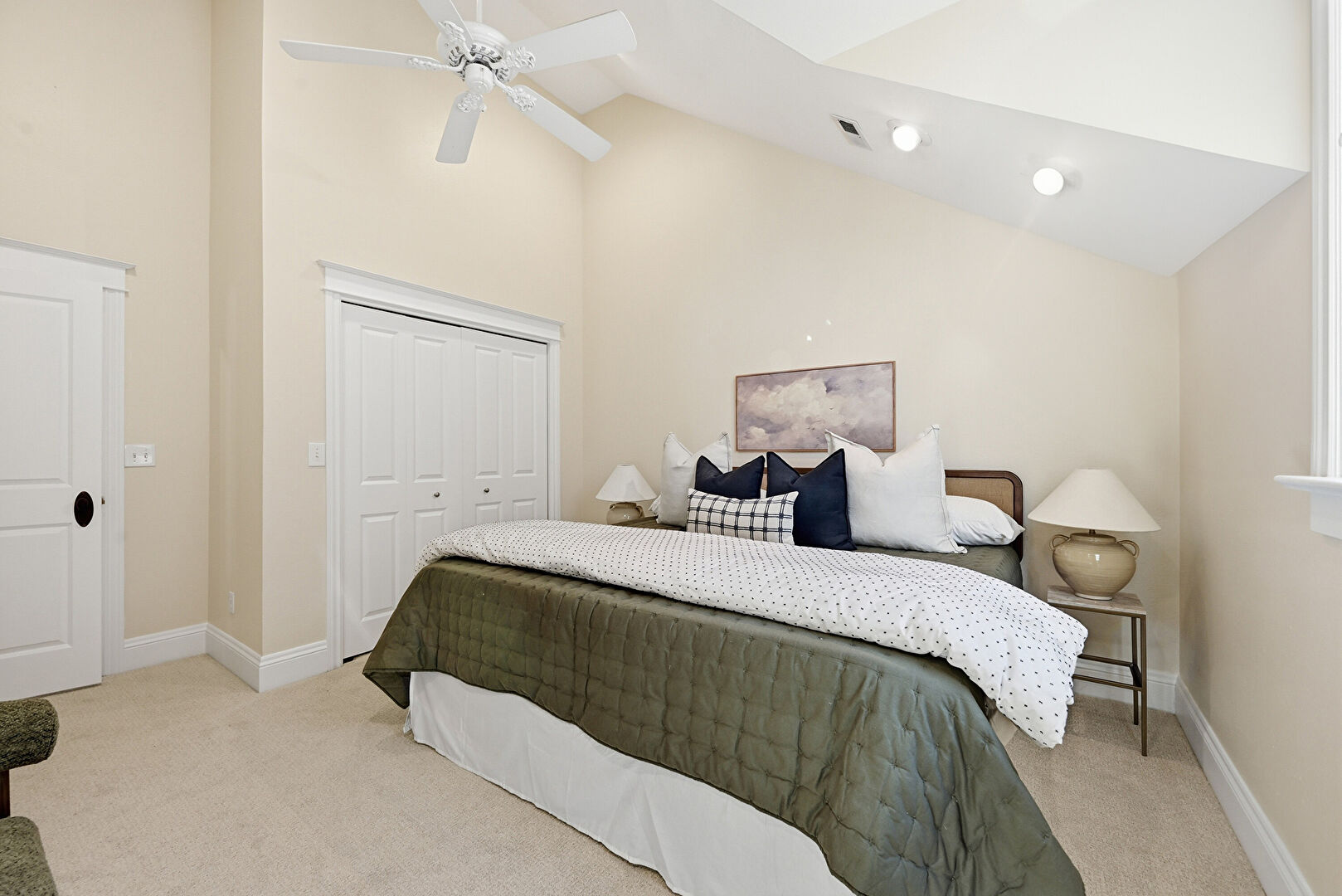 Baseboards Wall, Bonus Room, Carpet, Cathedral Ceiling, Ceiling Fan, Closet, Drywall, High Ceiling, Natural Light, Recessed Lighting, Vaulted Ceiling, Vent, Carpet, Recessed Lighting, Vent