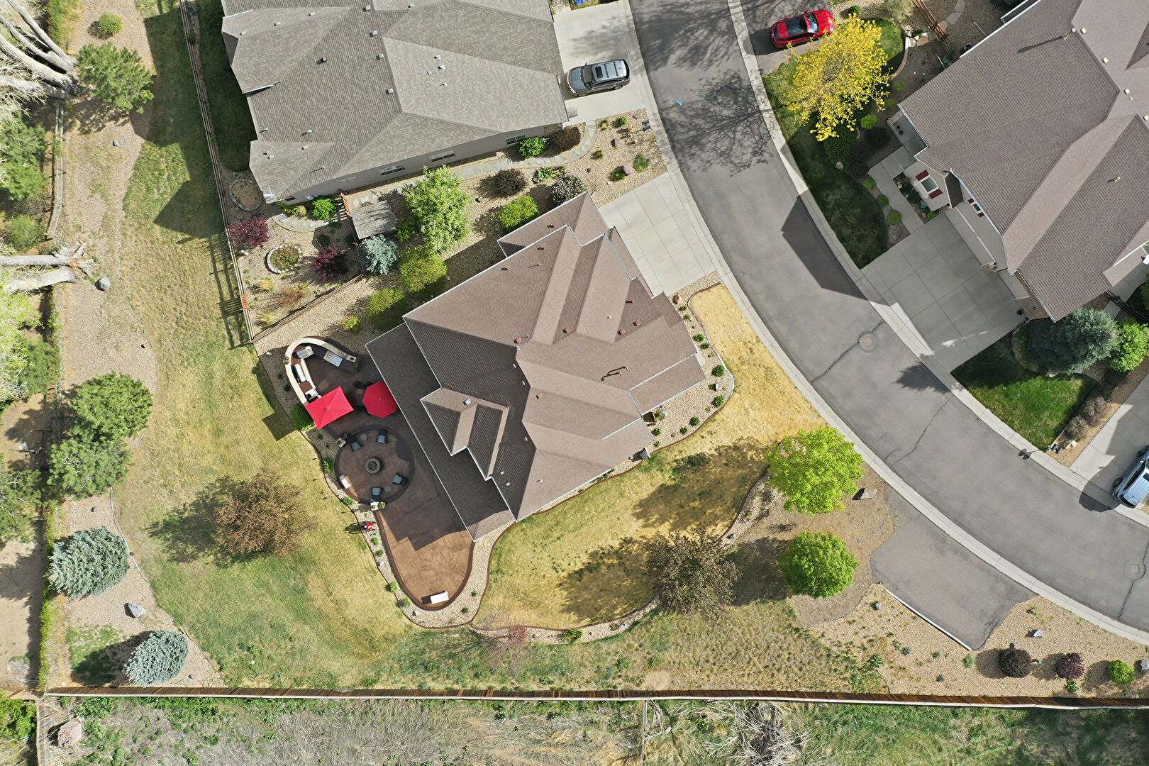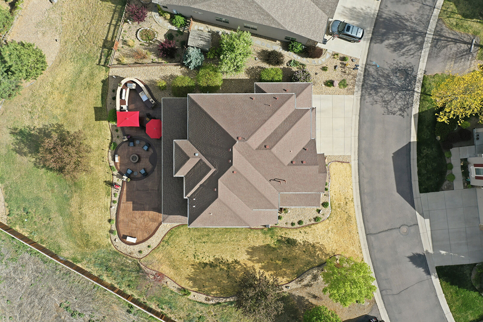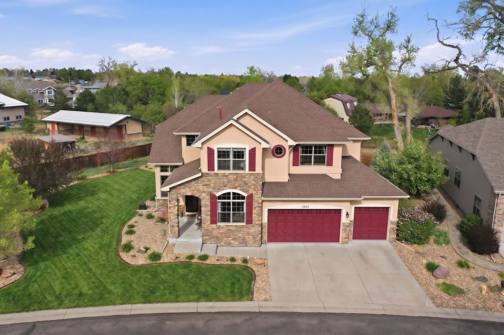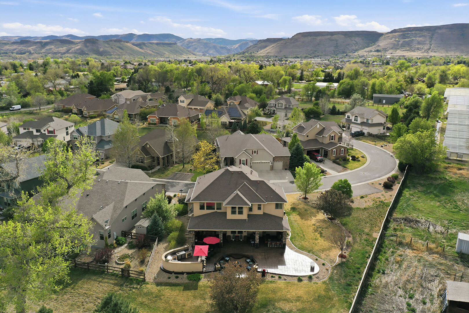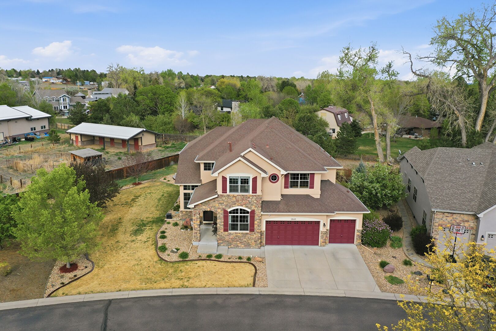 Built In Garage, Driveway, Fence, Mountain View, Porch, Residential View, Shingle Roof, Stone Siding, Stucco Siding, Woods View, Driveway, Mountain View, Residential View